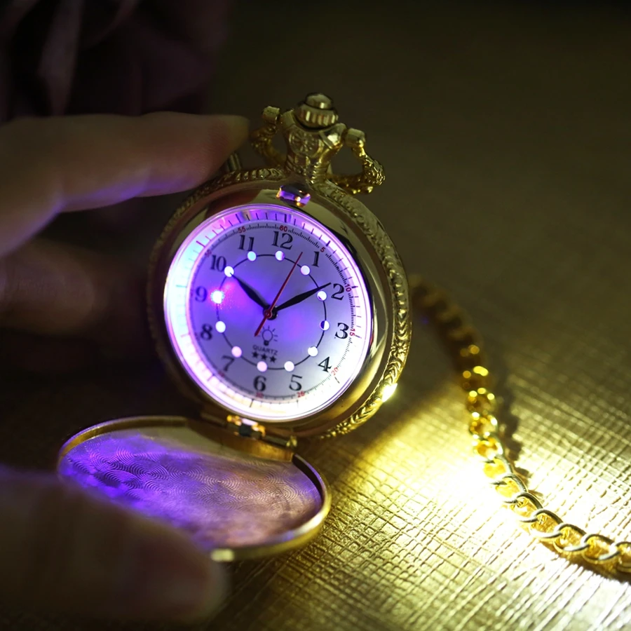 Часы наручные мотоциклетные со светодиодной подсветкой, модные кварцевые карманные, серебристые с резной цепочкой, подарок для мужчин и женщин