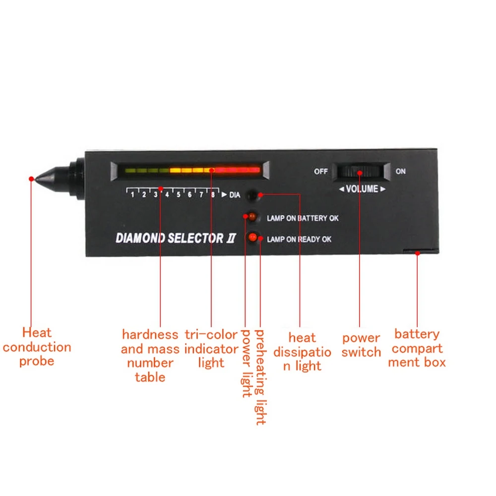 Алмазный тестер 6,5x1,5x0,75 дюйма, портативный тестер с подсветкой 60X, профессиональные инструменты для золота и ювелирных изделий, тестер, Алмазный тестер