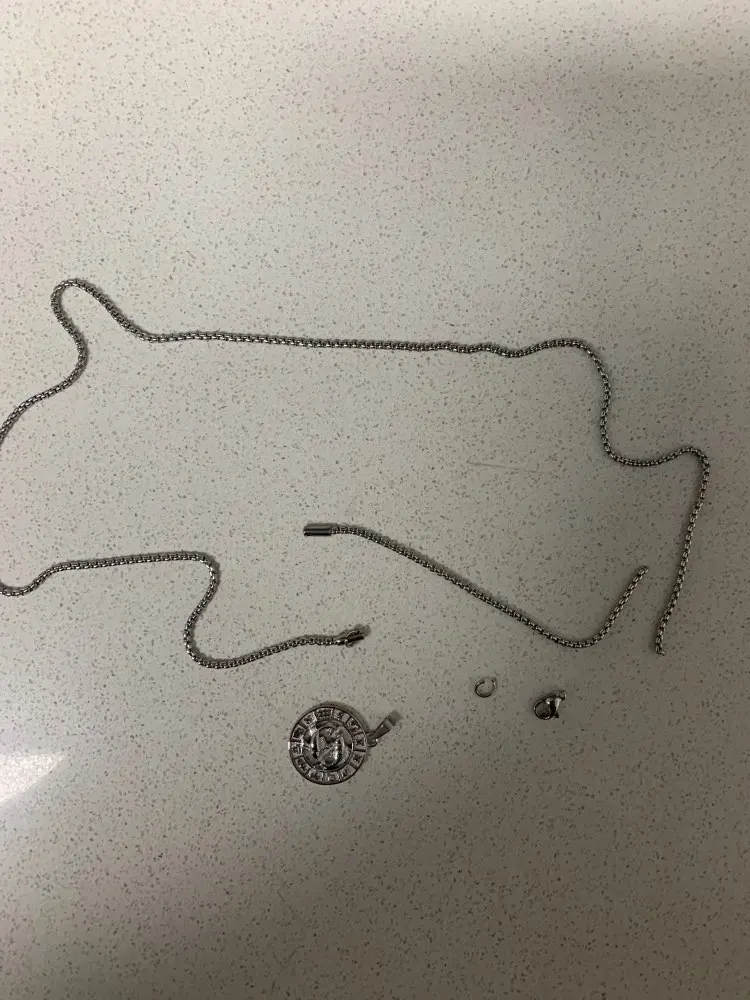 кулончик немного разочаровал,с обратной стороны выглядит очень плохо,плюс был в каких то рыжих пятнах ,я брала на подарок,цепочка тоже выглядит довольно дёшево,видно что не ювелира,в принципе толстенькая и я надеюсь носится будет долго