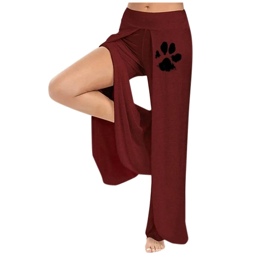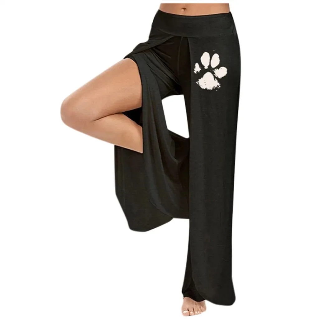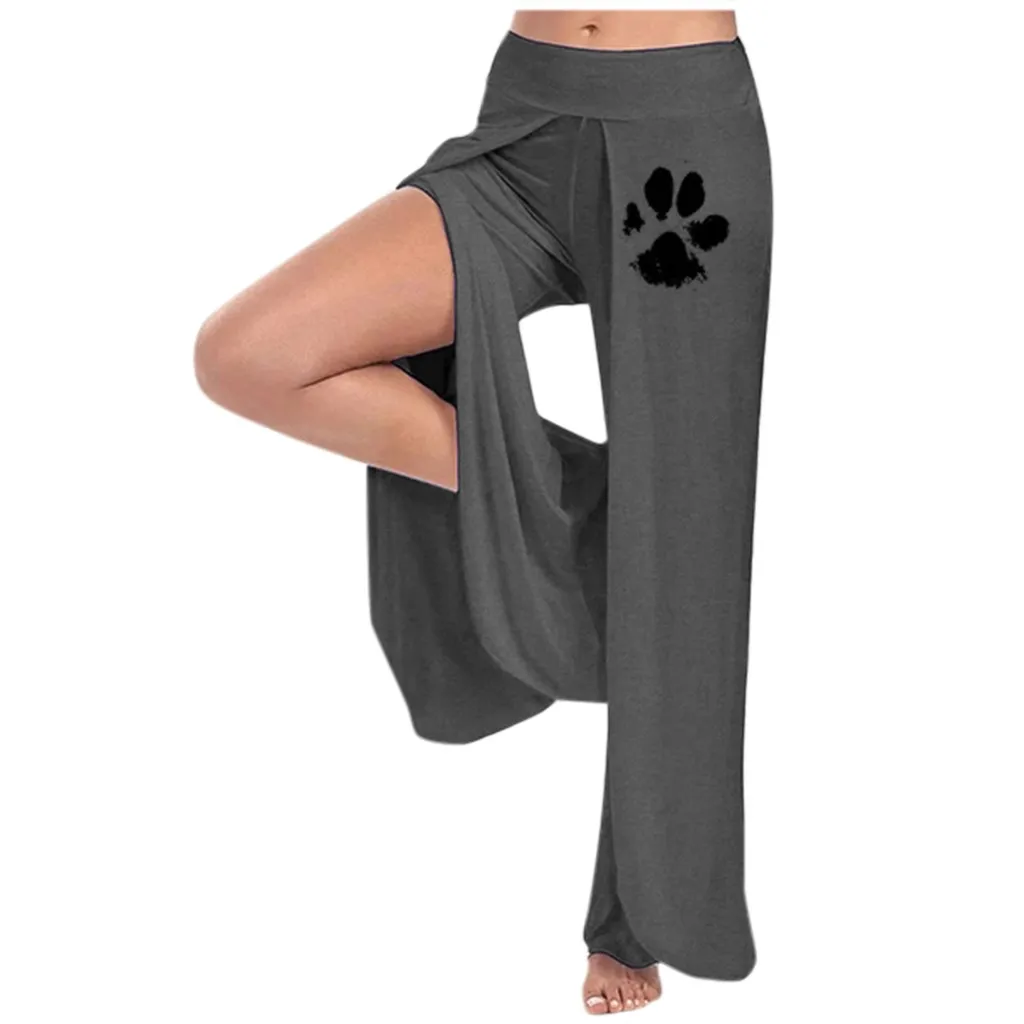 Женские повседневные свободные штаны для йоги с принтом собачьей лапы и разрезом сбоку