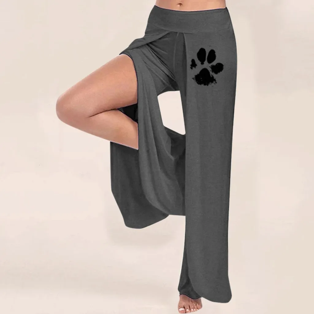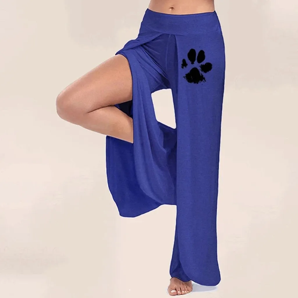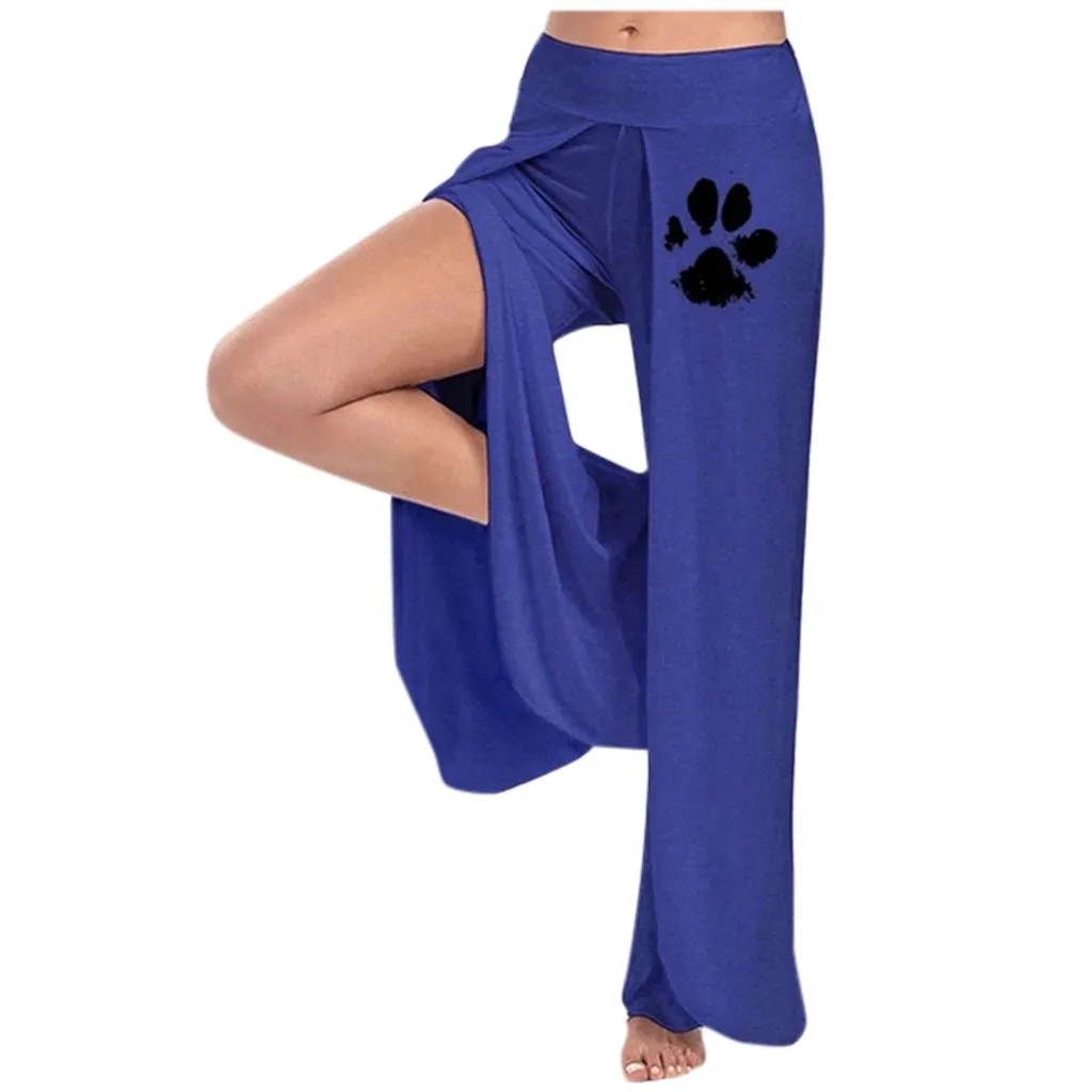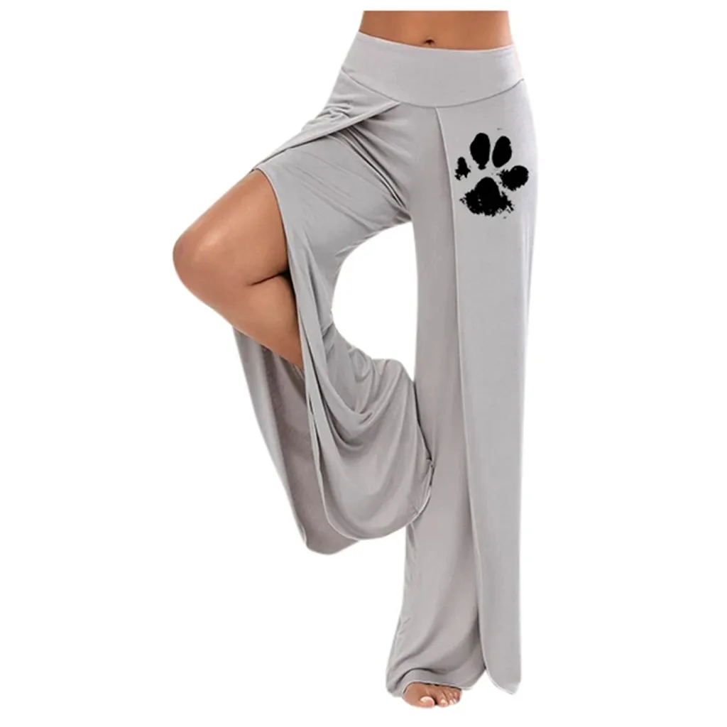 Женские повседневные свободные штаны для йоги с принтом собачьей лапы и разрезом сбоку