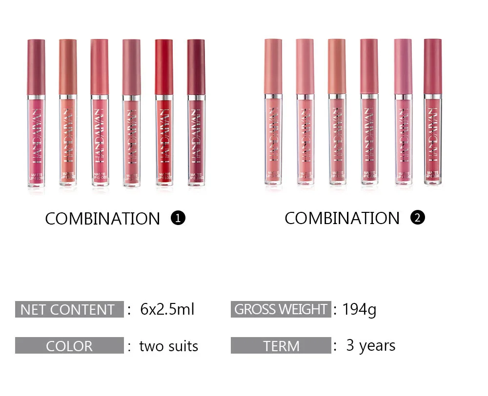 Набор матовых блесков для губ, 6 цветов, жидкая помада, водостойкая, длинная, Женский тинт для губ, набор косметики для красоты