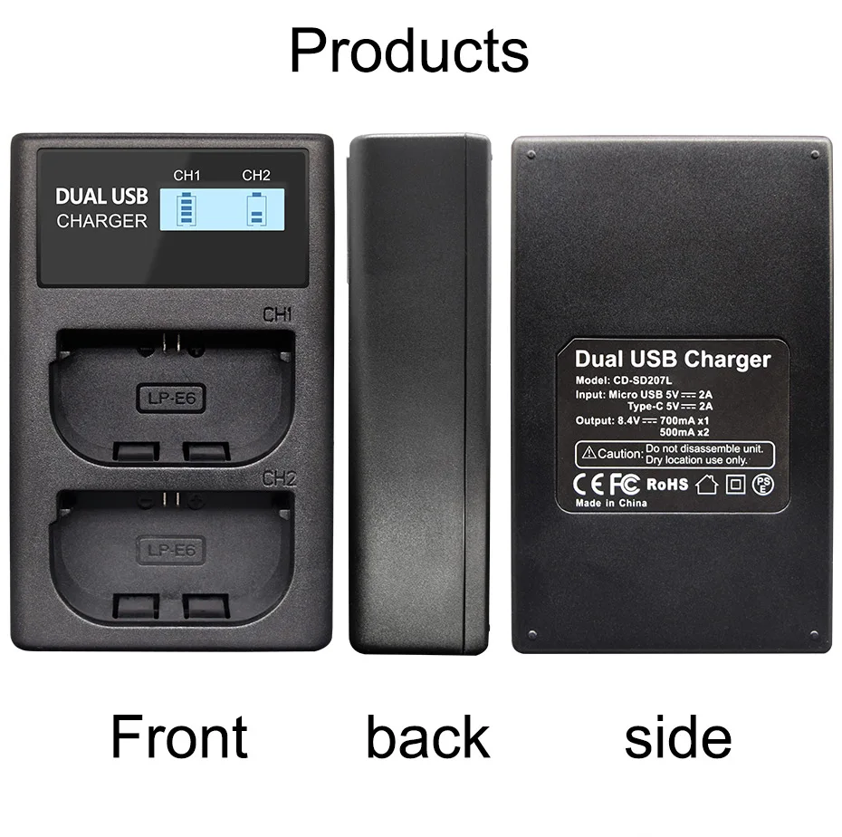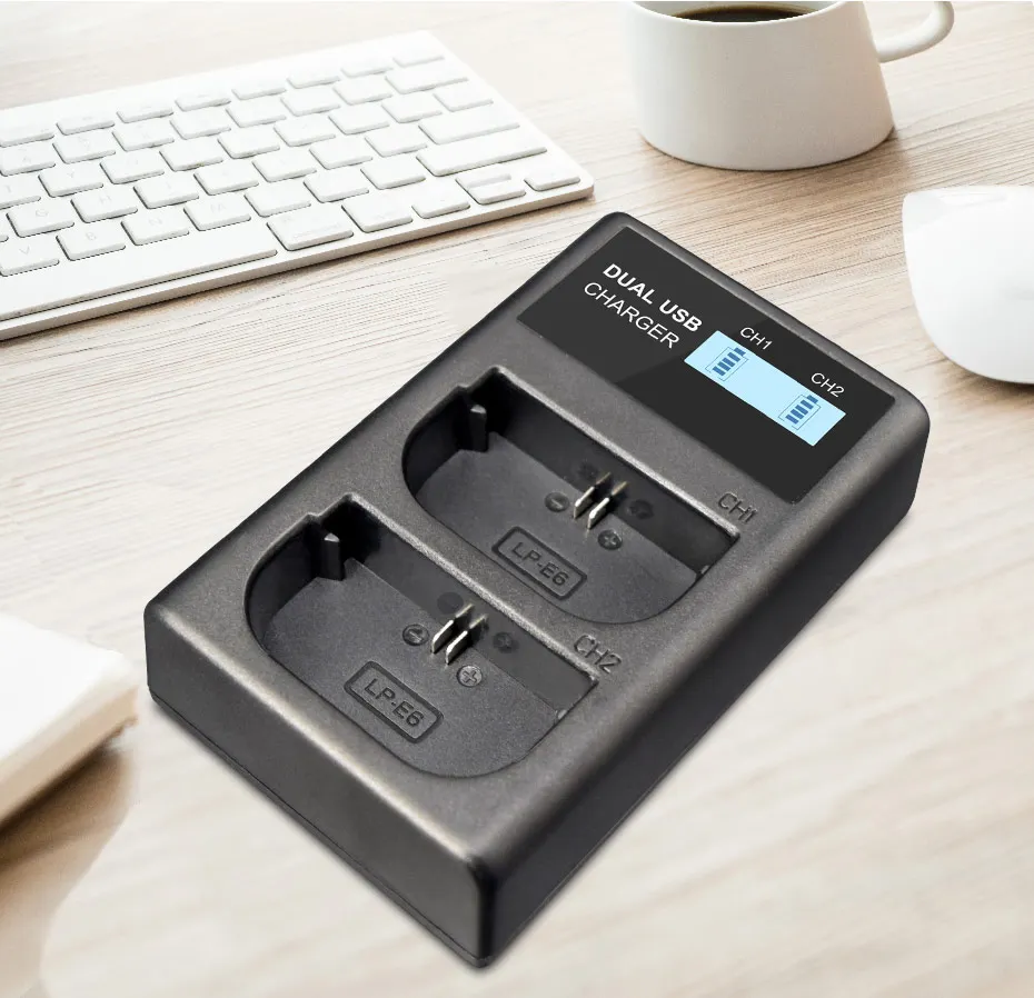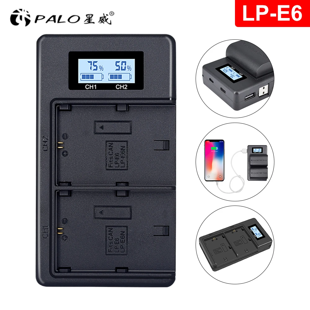 Двойное зарядное устройство LP E6 LPE6 LP-E6 E6N с ЖК-дисплеем для камеры Canon EOS 5DS R 5D Mark II 5D Mark III 6D 7D 80D EOS 5DS R