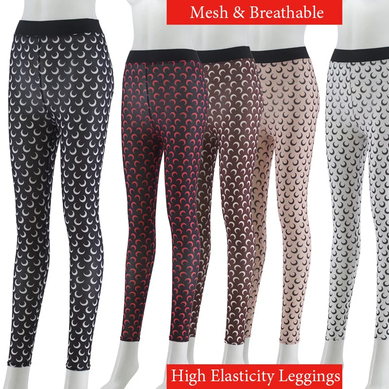 Женская летняя одежда, модная уличная одежда, сексуальные спортивные штаны для фитнеса, сексуальные прозрачные сетчатые леггинсы New Moon