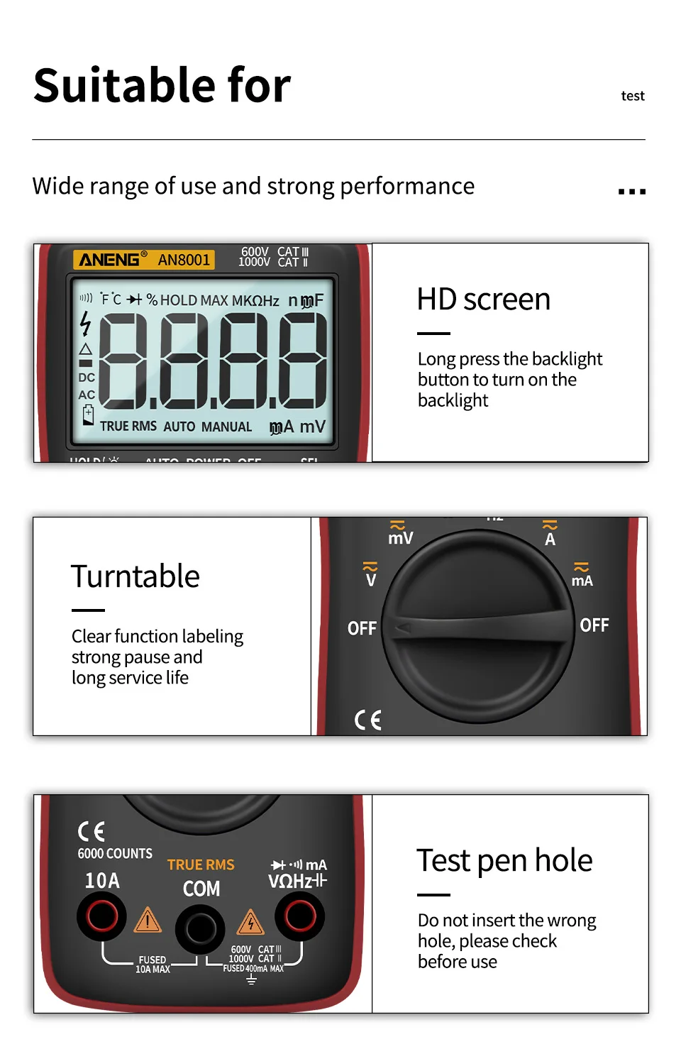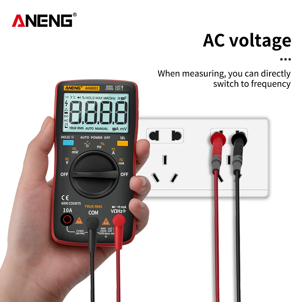 Портативный цифровой мультиметр AN8001, ЖК-дисплей, 6000 отсчетов, ...