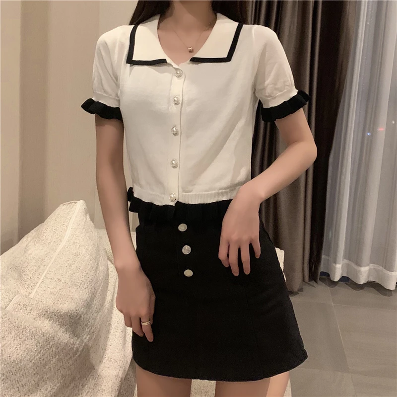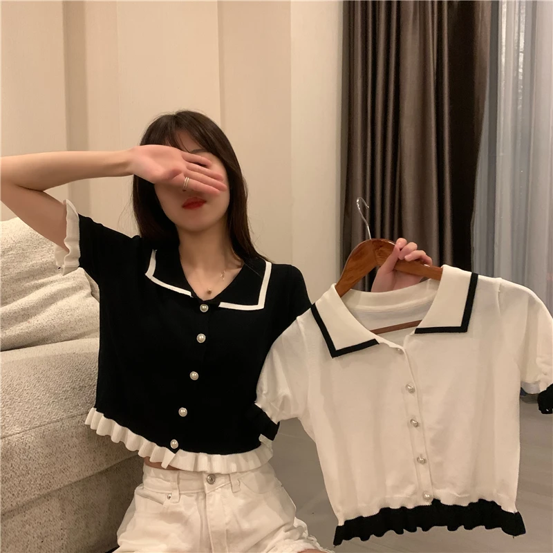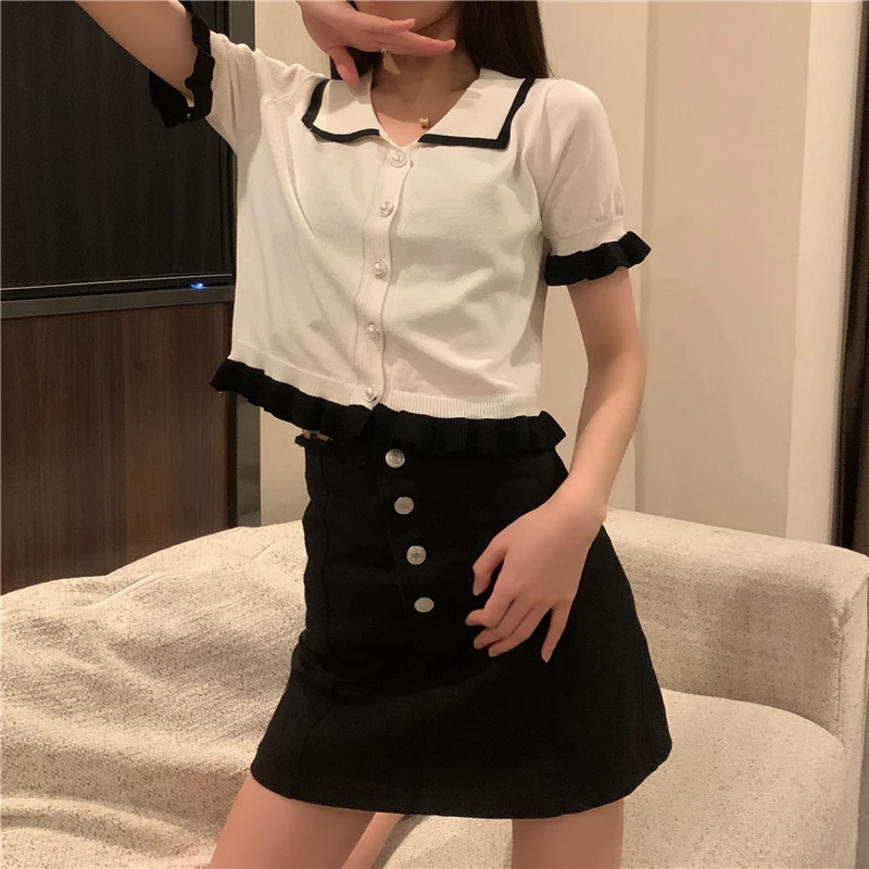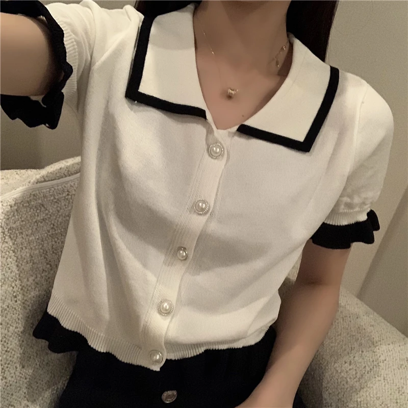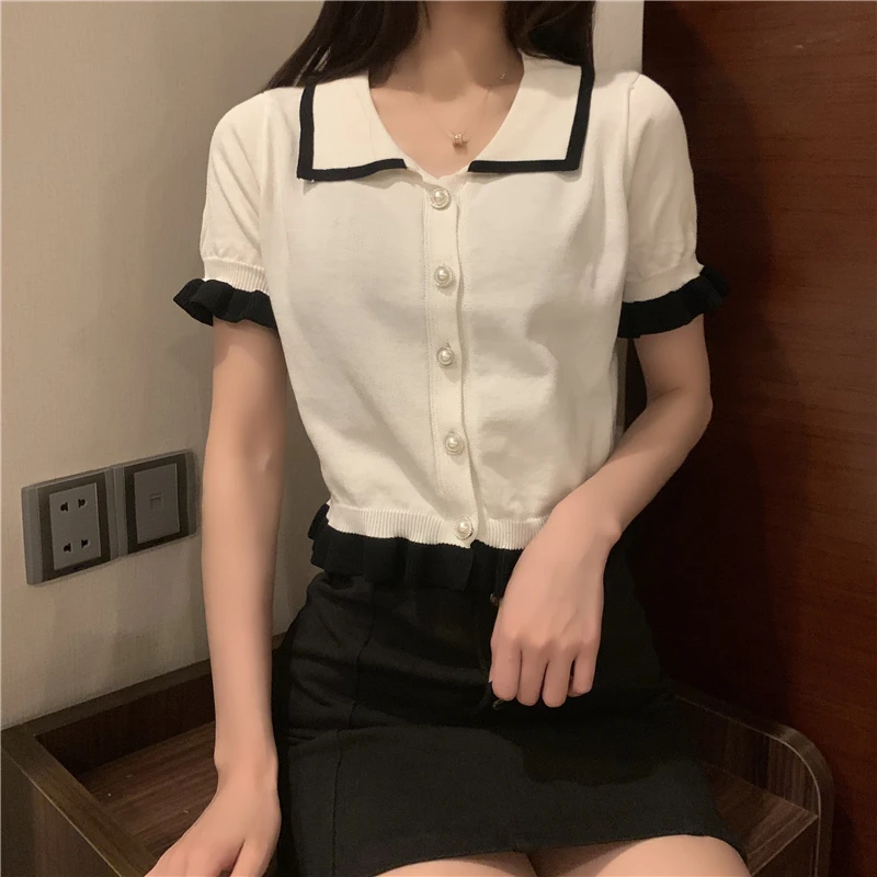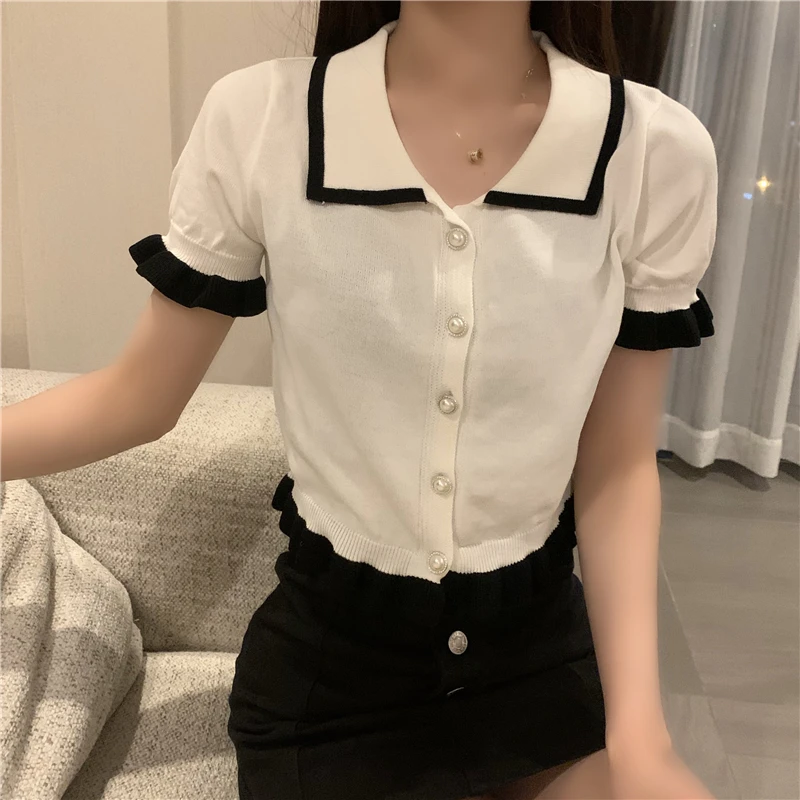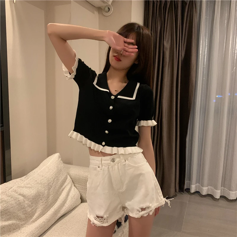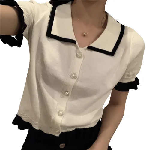 Вязаный кардиган с оборками, Женский однобортный эластичный укороченный свитер с оборками, летние топы, женские кардиганы