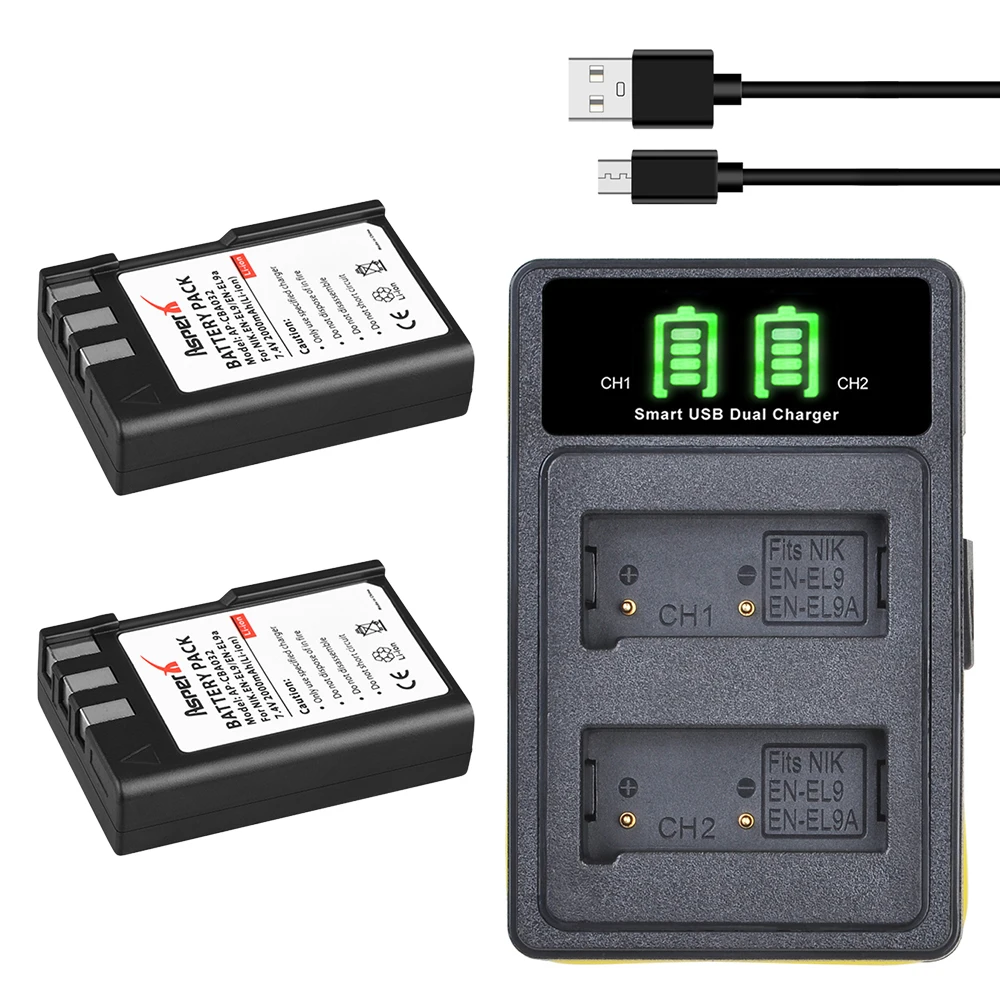 2 шт. 2000 мАч EN-EL9 EN EL9 EL9A EN-EL9a Аккумулятор для камеры li-ion Bateria + светодиодный USB зарядное устройство типа C для Nikon D40 D60 D40X D5000 D3000