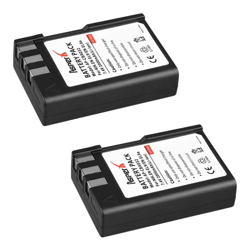 2 шт., литий-ионный аккумулятор для камеры 2000 мАч в EL9 EL9A с зарядным устройством USB типа C для Nikon D40 D60 D40X D5000 D3000