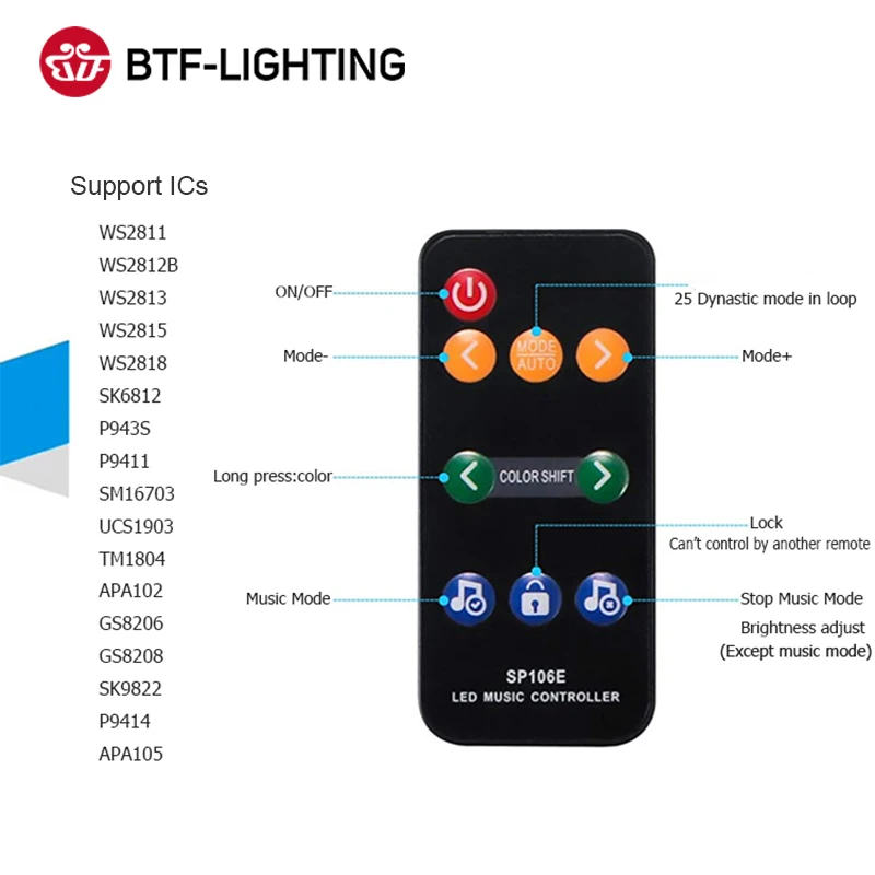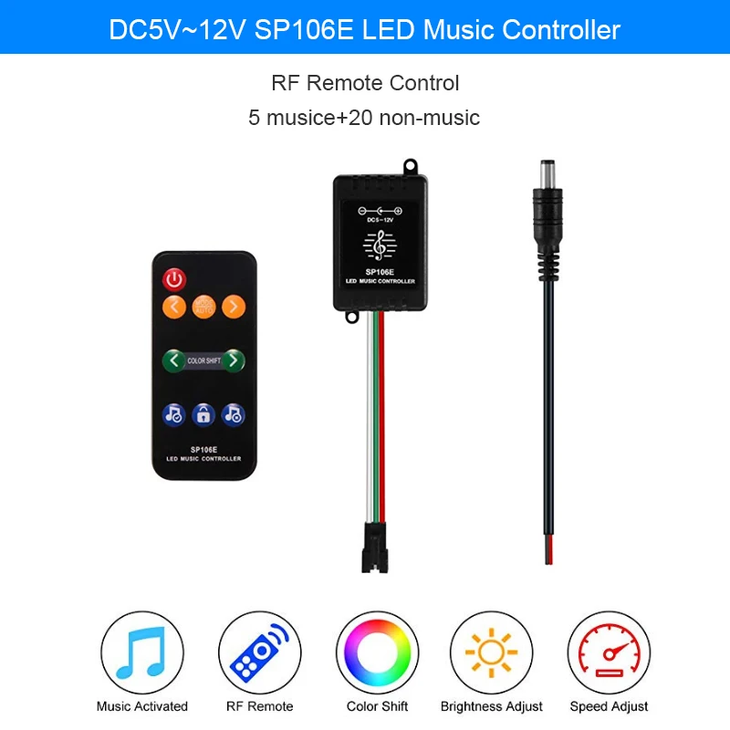 SP106E RGB светодиодный контроллер 9 ключей RF Беспроводной пикселей IC SPI Музыка Красочные WS2811 WS2812B SK9822 SK6812 APA102 полосы светильник DC5-12V