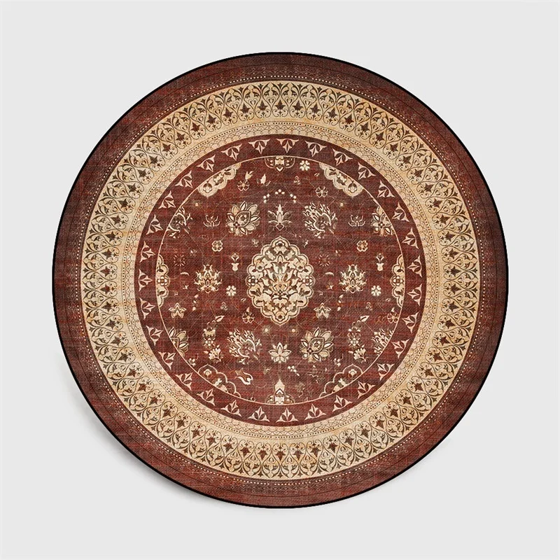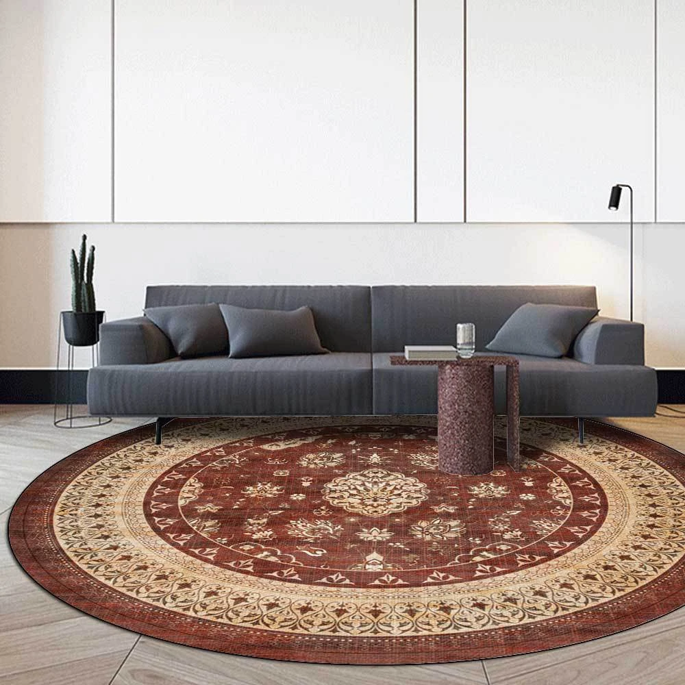Круглый ковер в стиле ретро с изображением коричневых цветов, напольный коврик для стула, мягкие коврики для гостиной, противоскользящий ковер, декоративный ковер для спальни