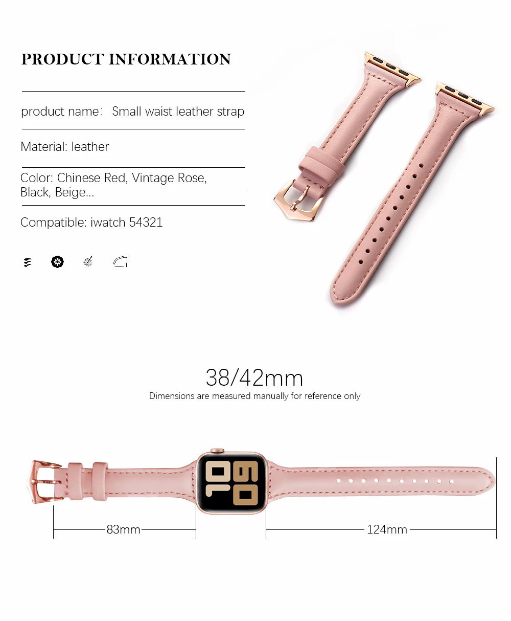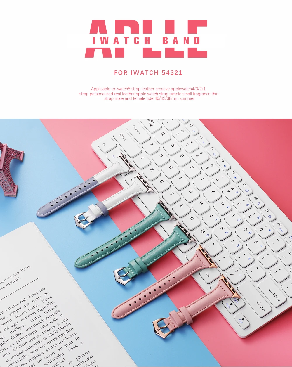 Тонкий кожаный ремешок для Apple Watch Se654 44 мм 40 мм, женский ремешок для смарт-часов iWatch серии 321 38 мм 42 мм, браслет, ремешок для часов