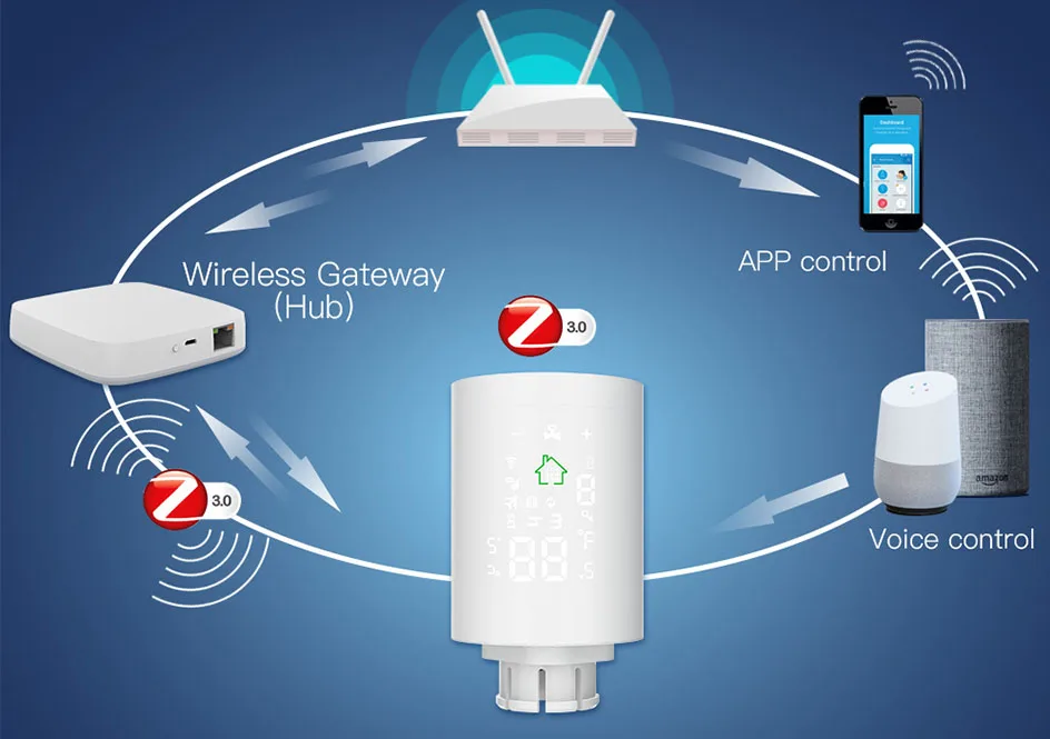 Tuya ZigBee 3,0 TRVИнтеллектуальное управление устройством через приложение после подключения его к беспроводному шлюзу ZigBee 3,0Wifi роутер-беспроводной шлюз хаб | Управление через приложение | Голосовое управление