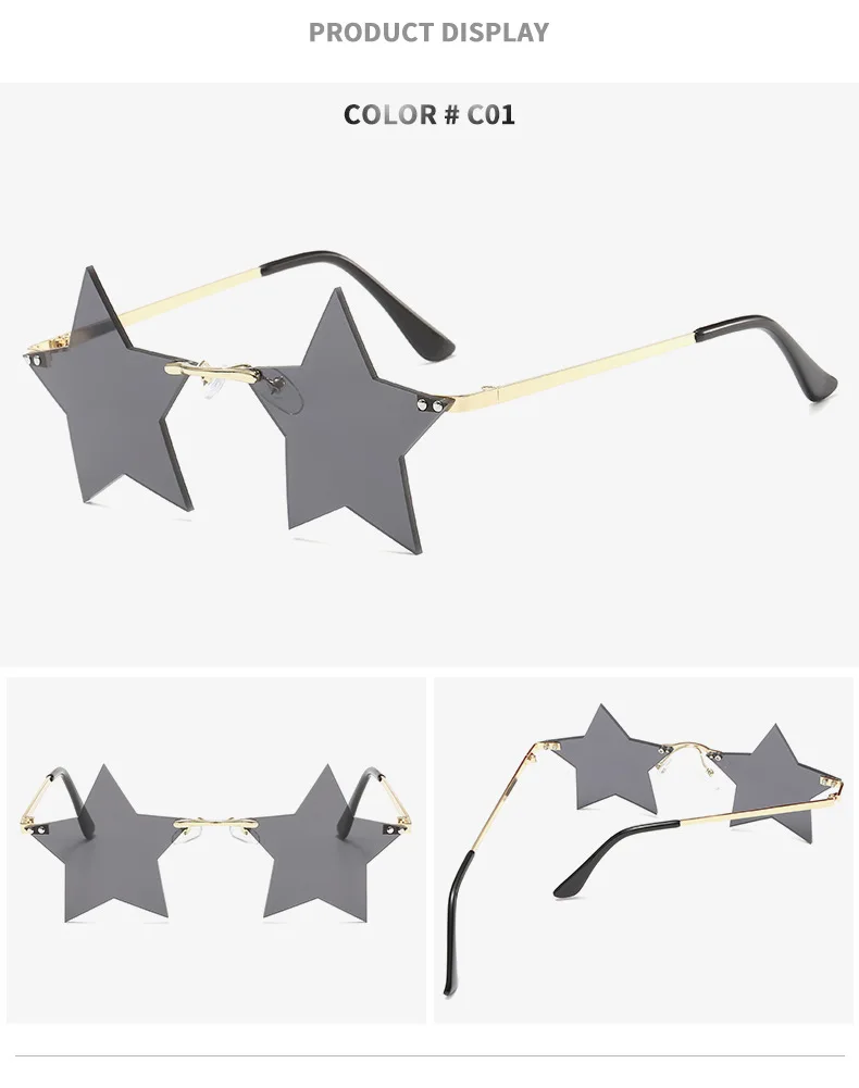 Женские солнцезащитные очки в форме звезды, очки без оправы в оправе из сплава, стильные очки с прозрачными линзами NX