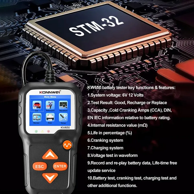 KW650 автомобильный тестер батареи автоматическое зарядное устройство диагностический инструмент 6 в 12 В автомобильный тестер батареи для мотоцикла электромобиля лодки
