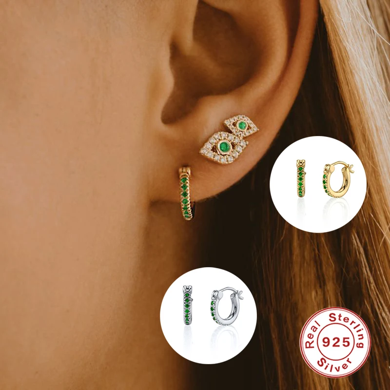 Настоящее 925 пробы, серебро, роскошный зеленый циркон, маленькие серьги-кольца для женщин, подарок на день Святого Валентина, Висячие ювелирные изделия