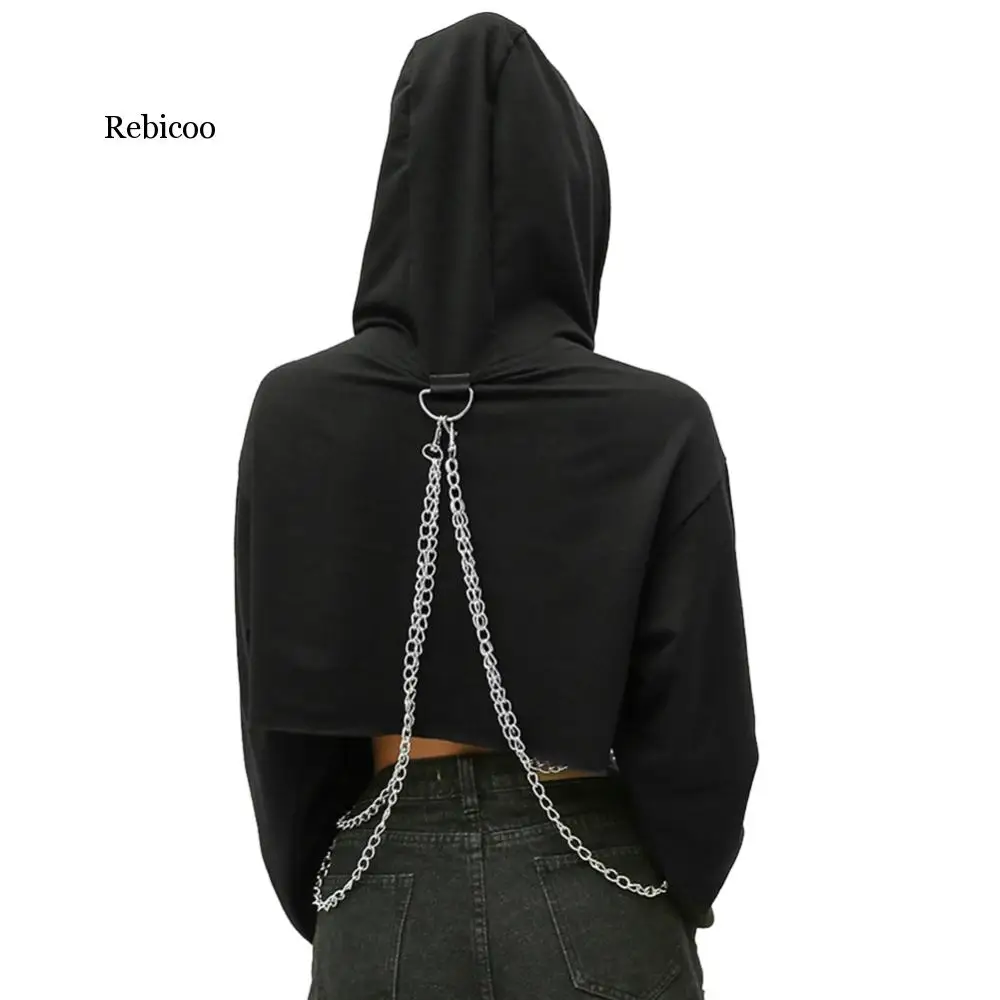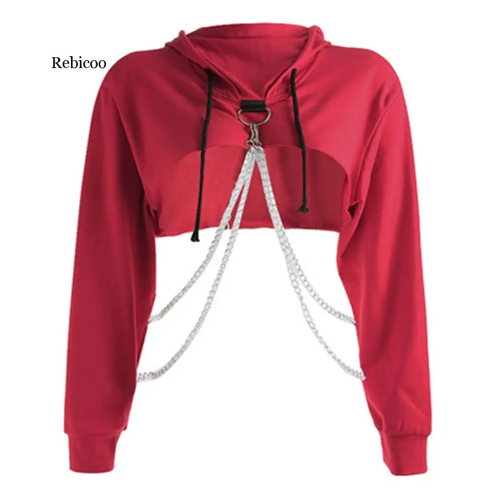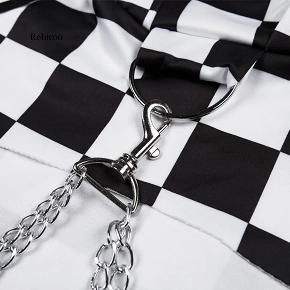 Женская Повседневная Уличная одежда в клетку, толстовка с капюшоном, короткий топ, джемпер, пуловер с цепочкой, короткий Свободный свитшот, клетчатая рубашка