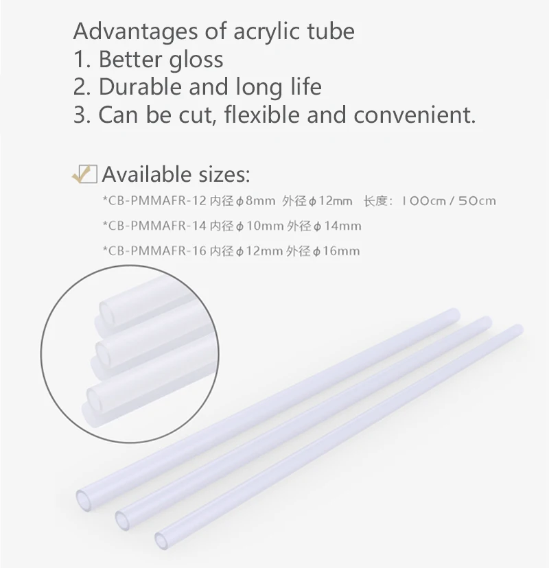 BYKSKI 4 шт.лот ЖесткаяПММАакриловая матовая жесткая трубка (OD12mmOD14mm OD16mm ) + толщина 2 мм + длина 50 см