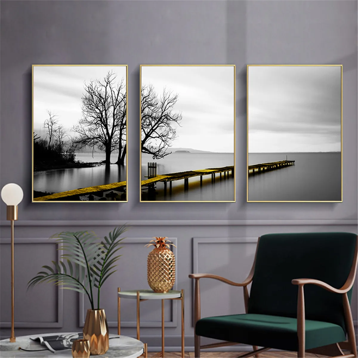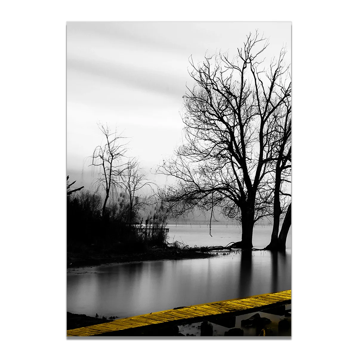 Современный черный, белый цвет берег реки плакат с изображением моста Печать холст Картина Wall Art Гостиная (Спальня) украшение дома