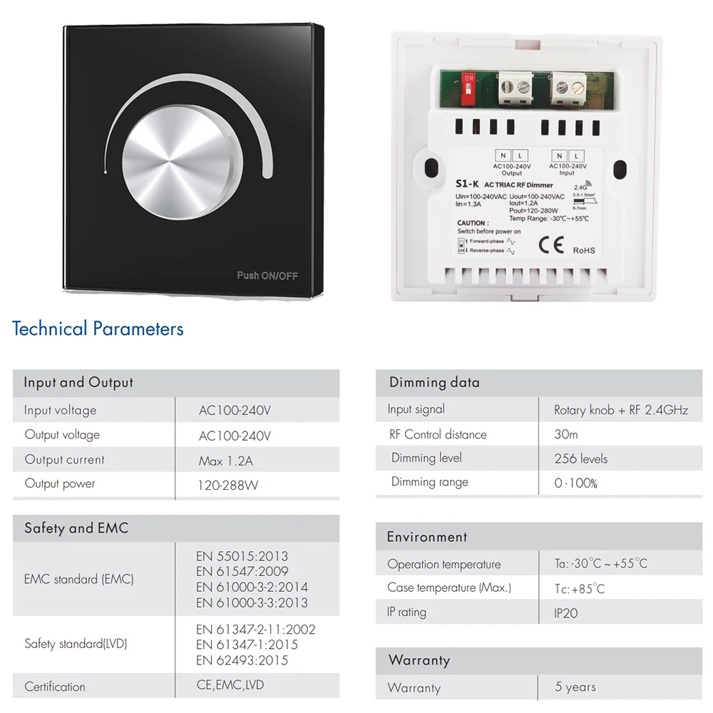 Регулятор яркости для светодиодных лампочек, вращающийся, беспроводной, с дистанционным управлением 220G, 230 В, 110 В, 2,4 В переменного тока, с S1-K