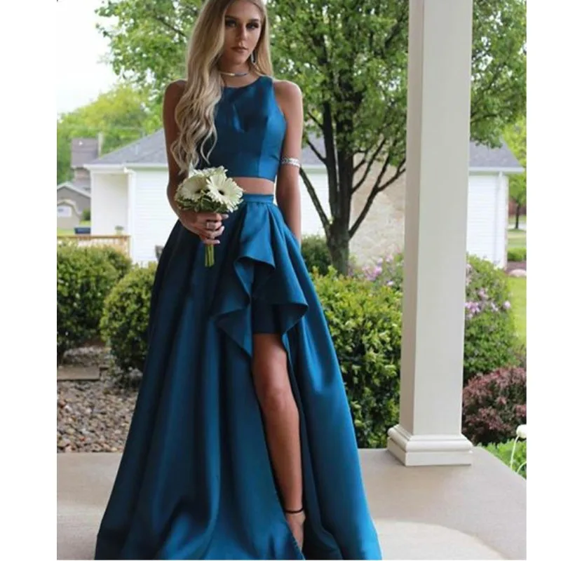 Милые детские синие платья для выпускного из двух частей, короткие ...