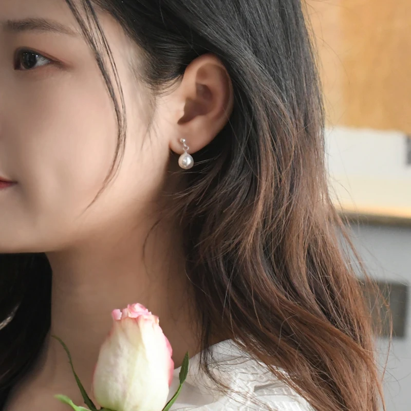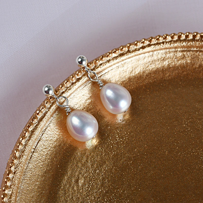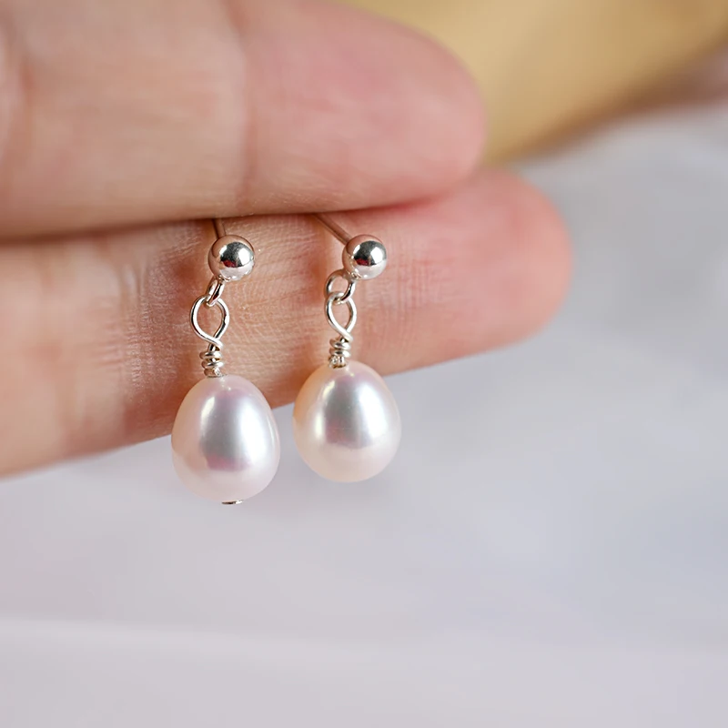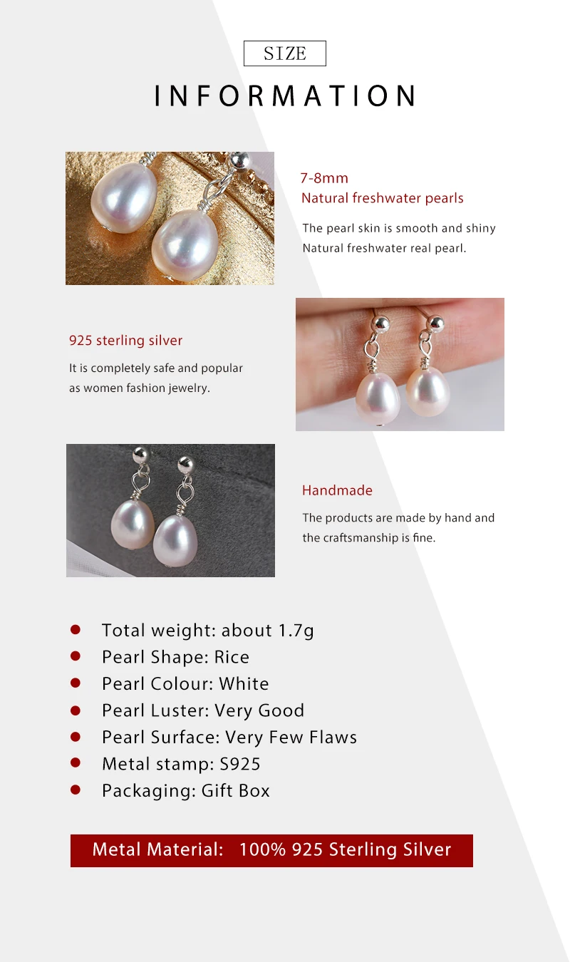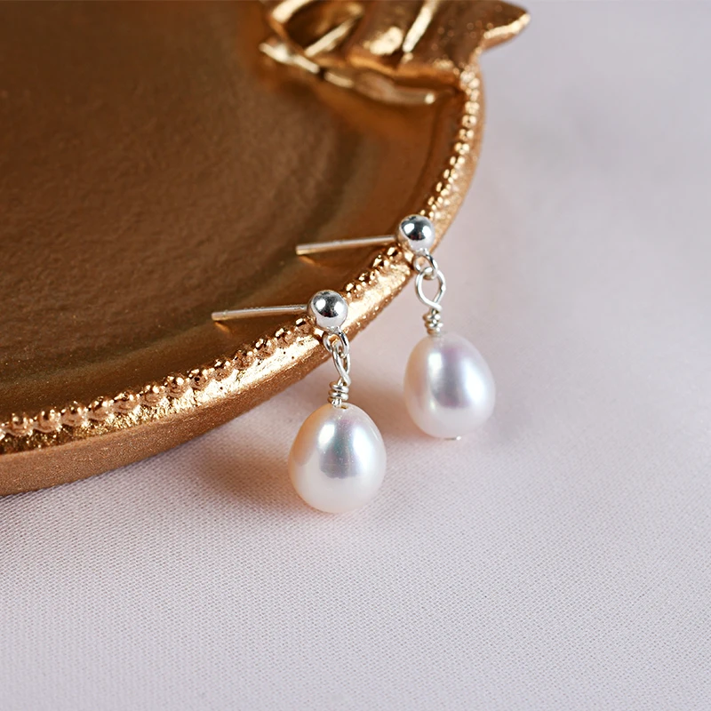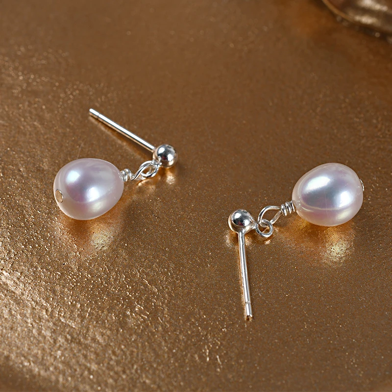 Женские серьги-подвески из натурального белого пресноводного жемчуга ASHIQI, из серебра 925 пробы, Подарочная бижутерия