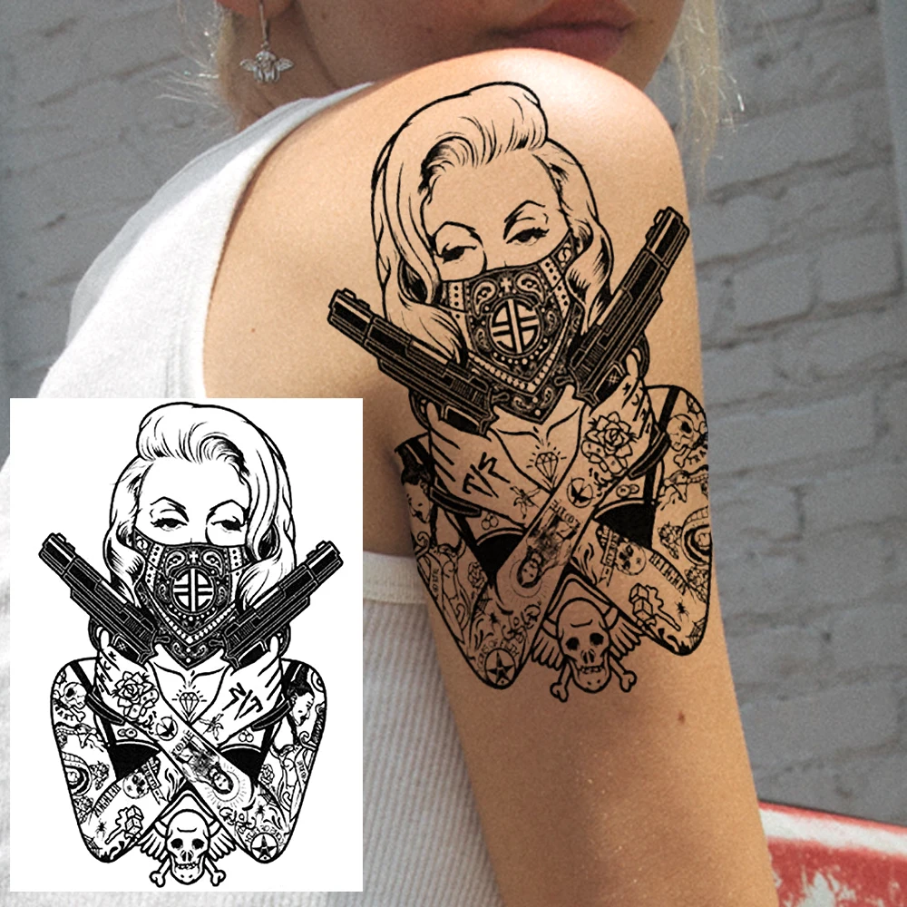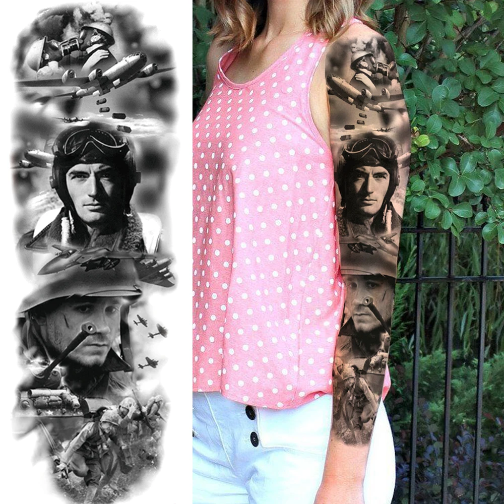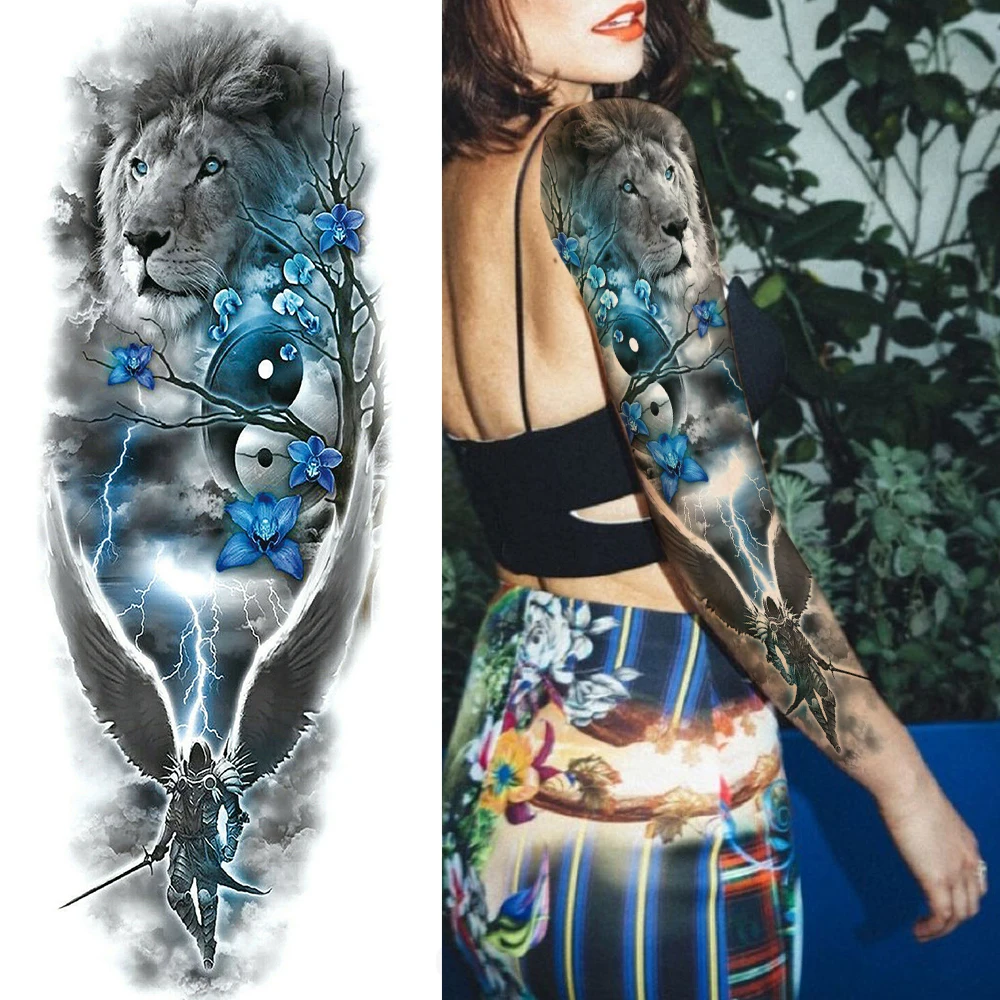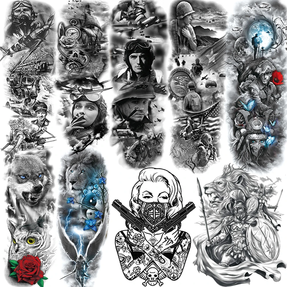Тату временные для мужчин и женщин Black Soldier, реалистичные моющиеся тату на всю руку, Лев, волк, крутая Гангстерская тату-паста