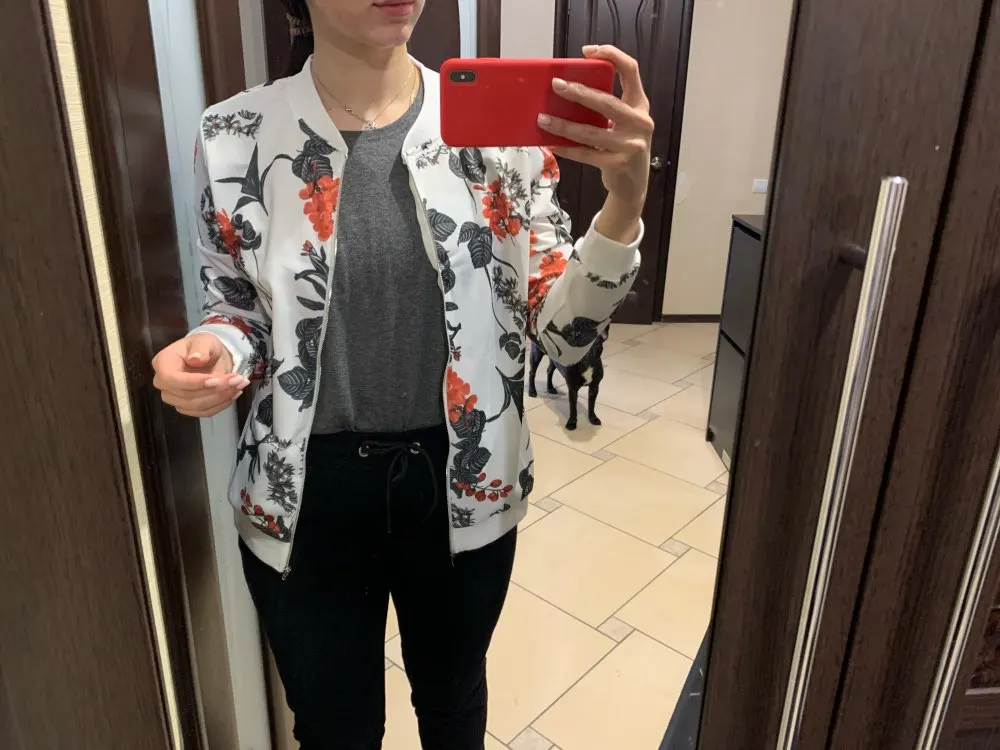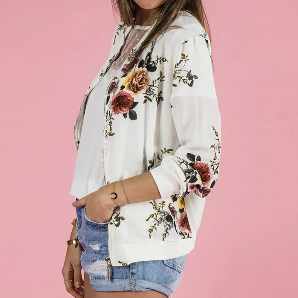 Женская куртка на молнии с цветочным принтом, Повседневная Свободна...