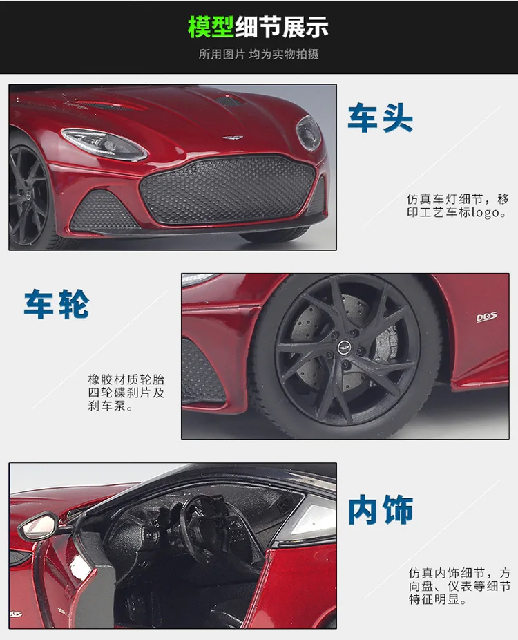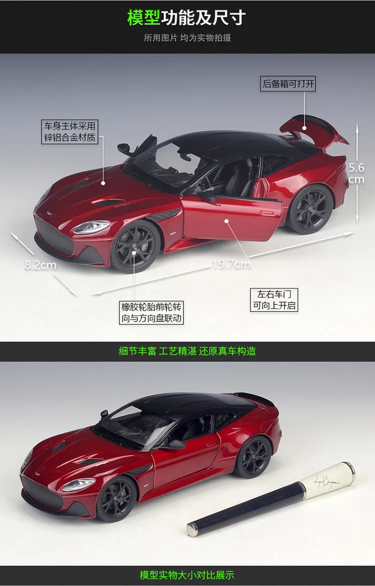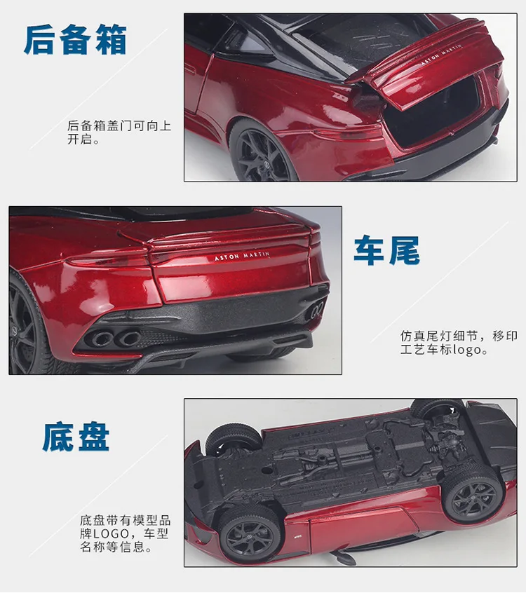 Название: Aston Martion DBS SuperleggeraБренд: WellyРазмер: около 19,7 см x 8,2 см x 5,6 смМасштаб: 1:24Материал: литой металлический корпус с пластиковыми деталямиЦвет: синий/красный/серый/белыйФункция:● Открытие багажника и двери● Четырехколесное свободное вращение