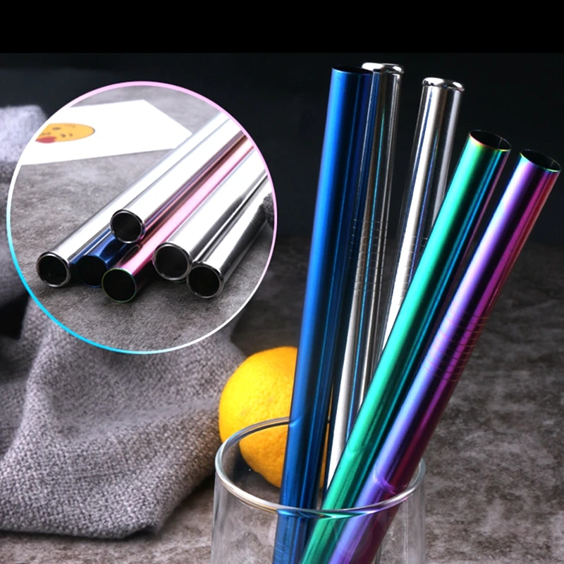 Трубочка металлическая 304, 12 мм, с кисточкой, набор соломинок, из нержавеющей стали, для многоразового использования, соломинки для смузи, очень широкая, для чая с пузырьками, 4 шт.
