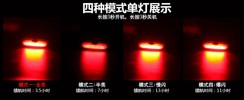 Протестировано при сильном дожде 3 ч и очень хорошо. Он имеет два фиксированных режима различной интенсивности и Два мигающих режима. В коробке указано, что q длится 12 часов. Мы увидим. Он заряжается через usb некоторое время.