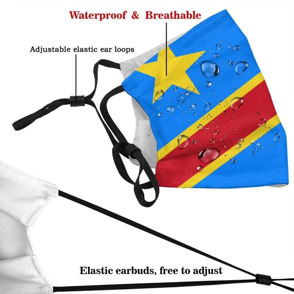 Многоразовая маска для лица с флагом Республики Конго, Пылезащитная маска с фильтром и защитой от смога, из полиэстера