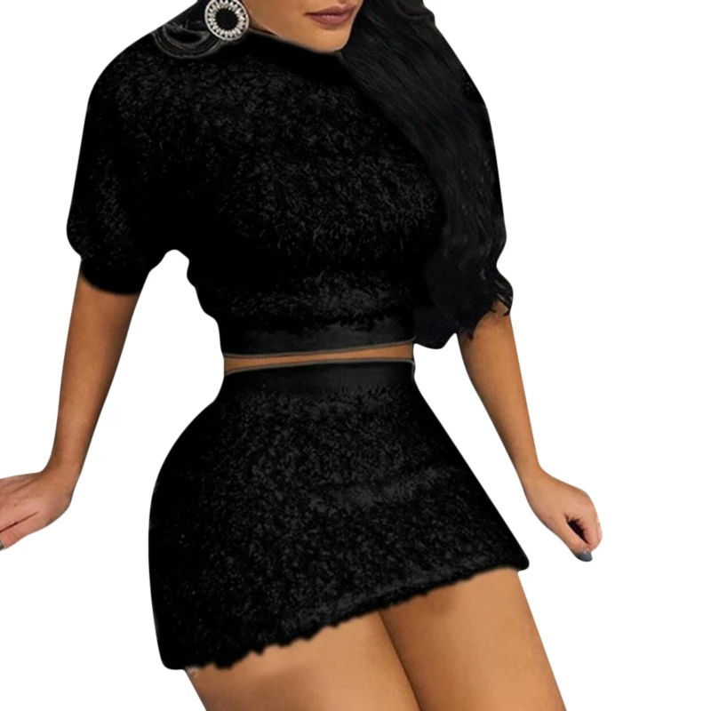 Комплект из двух предметов, женский свитер + юбка-карандаш, костюм, флисовые облегающие Короткие топы с длинными рукавами, юбка, комплект из 2 предметов, Женский трикотажный спортивный костюм