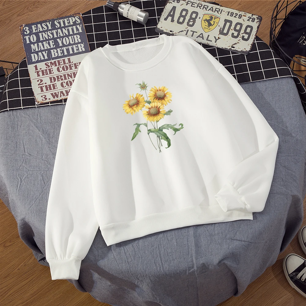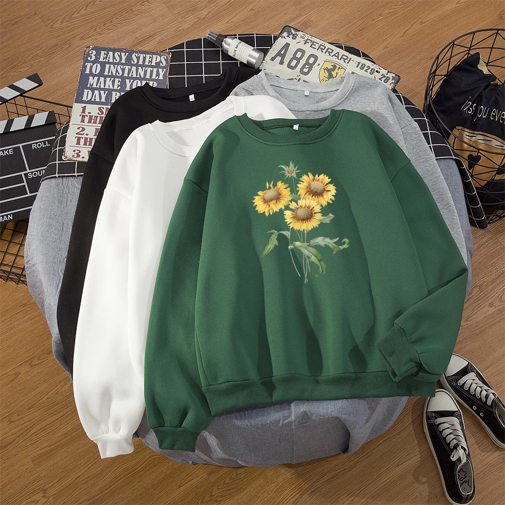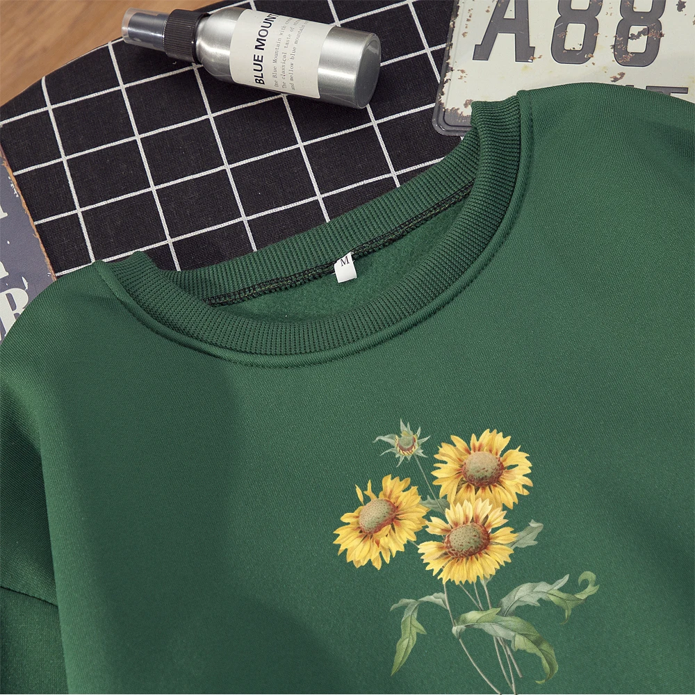 Зимний Женский свитшот с круглым вырезом, толстовка в стиле Харадзюку, большие размеры, с принтом подсолнуха, Корейская уличная одежда, толстовки, Модные осенние пуловеры