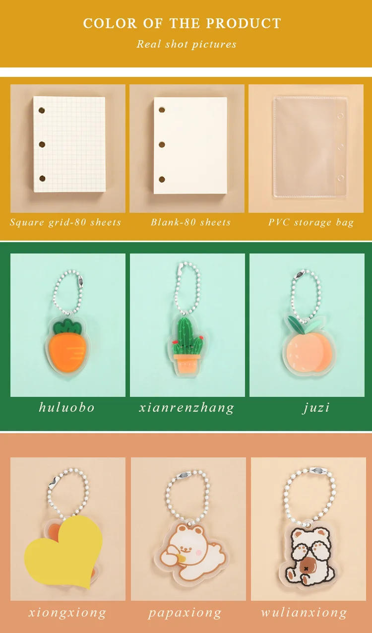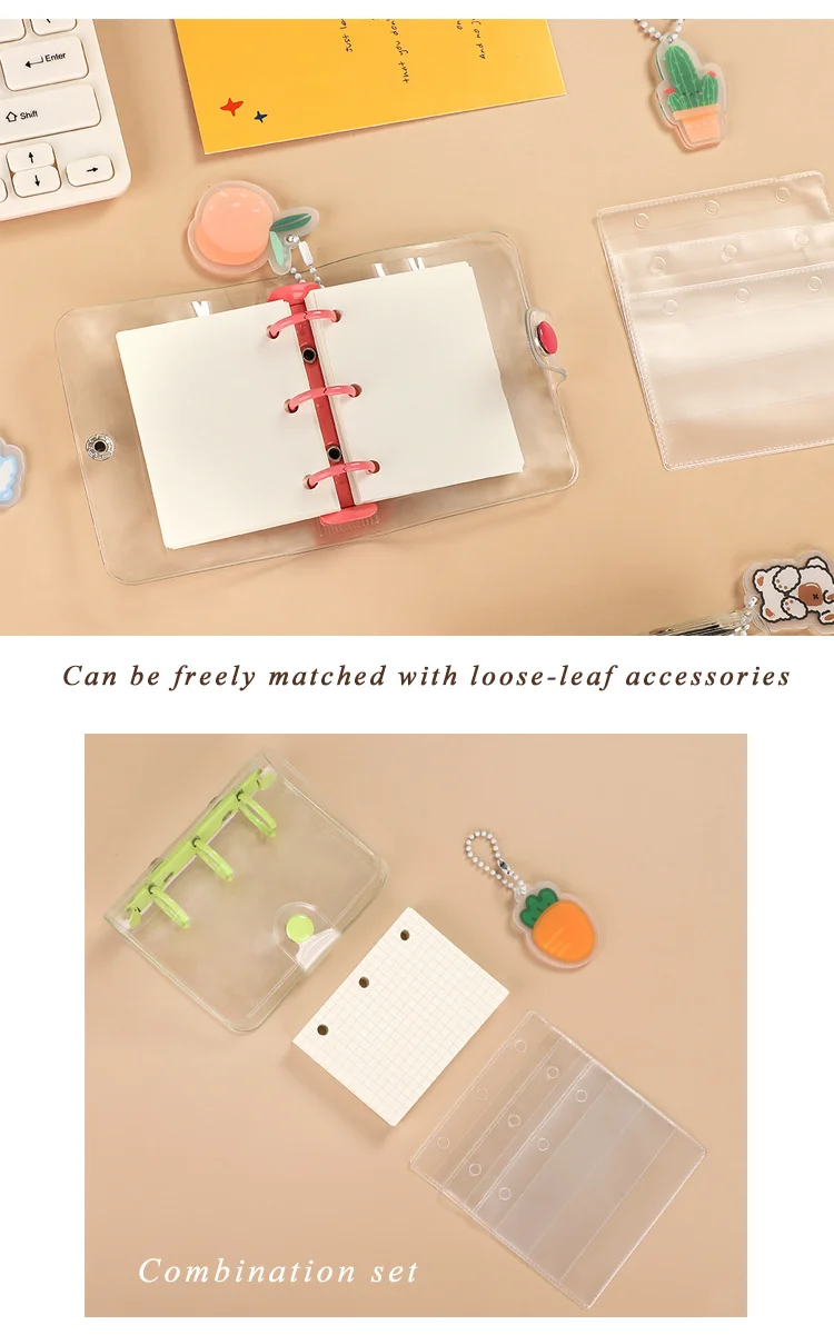 Мини-книжка JIANWU, прозрачная, с 3 кольцами, с отрывными листами