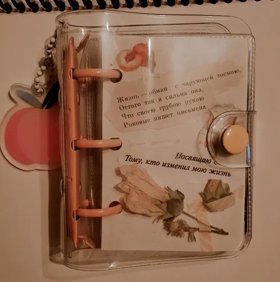 Это самый уютный блокнот который когда либо у меня был. С ним так приятно взаимодействовать, держать в руках, столько вариантов для оформления! Чудесная персиковая защёлка работает отлично, плотная. В подарок продавец вложил три файлика под формат блокнота, и чёрную гелиевую ручку, что очень приятно, так как пишу я исключительно чёрными гелиевыми ручками) Спасибо!