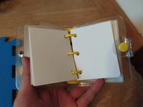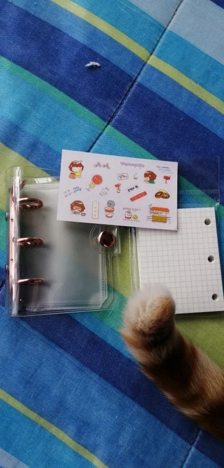 Очень мило! ПВХ (покрытие) довольно толстый, но это действительно не беспокоит меня, так как это немного. Доставка занимает около 2 месяцев или может занять немного больше времени. Хорошее состояние. Также продавец дал мне маленькую ручку, в подарок! В целом люблю этот маленький Биндер!