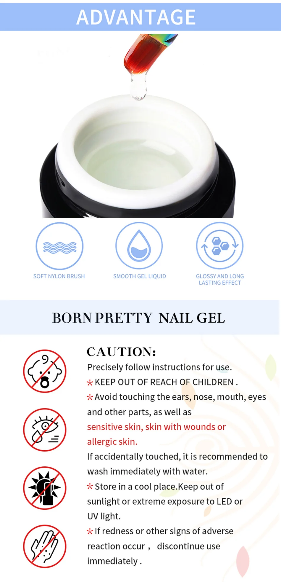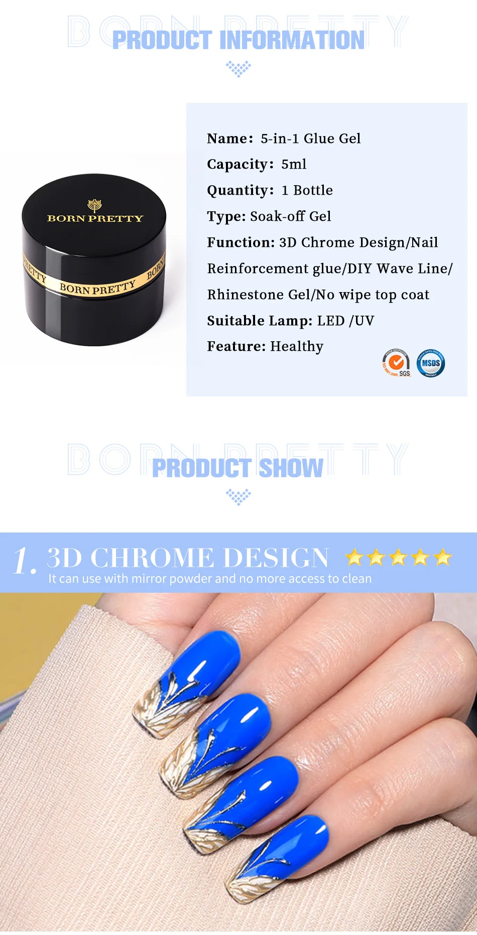 Гель-лак для ногтей BORN PRETTY, 5 в 1, не протирается, верхнее покрытие, эффективный клей, водный гель для ногтей, дизайн сделай сам