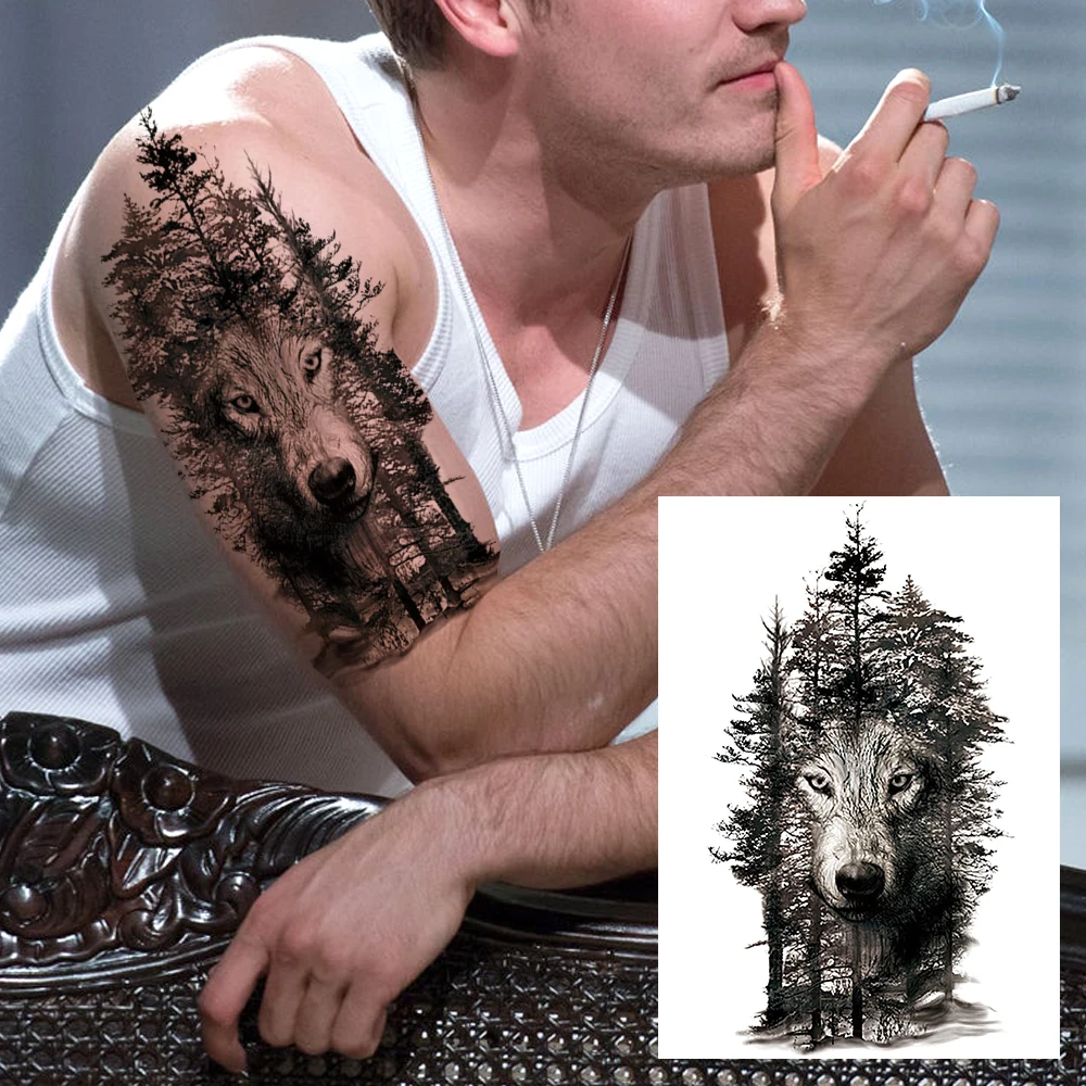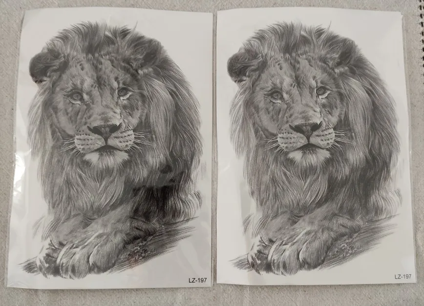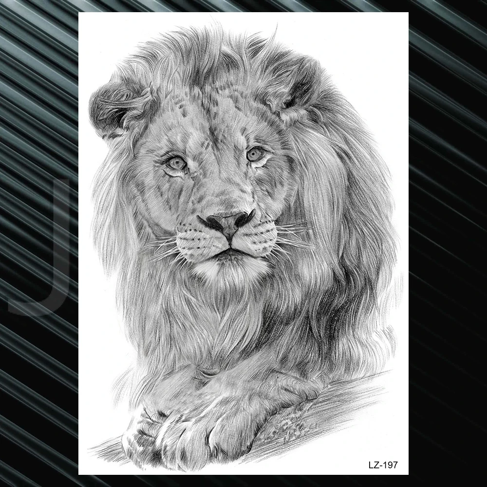 Временные татуировки для мужчин и мальчиков, 3D, высокое качество, Лев, тигр, реалистичные, черные, водостойкие, Переводные татуировки, для взрослых, товары для вечеринок