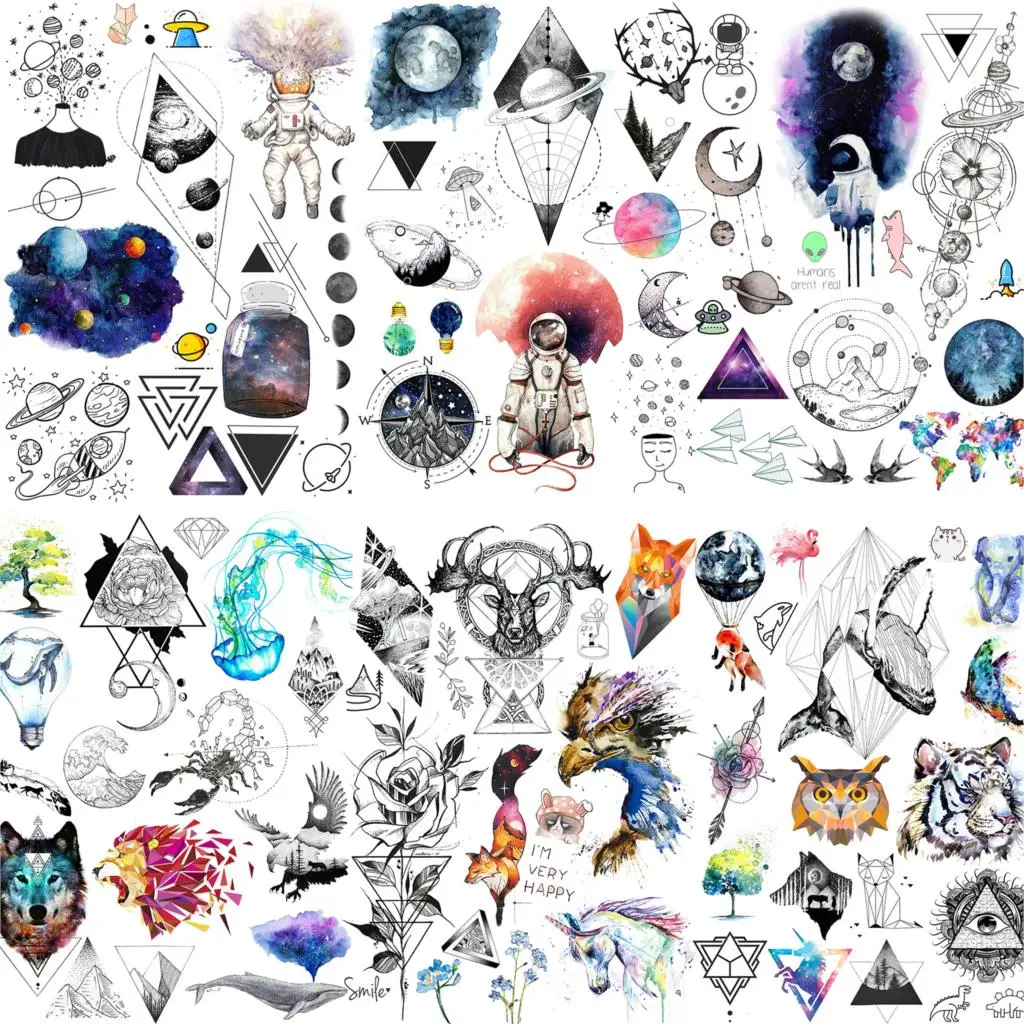 Временные татуировки для детей, женский боди-арт, татуировки для лица, реалистичные, смываемые, с геометрическими цветами, волком, для мужчин