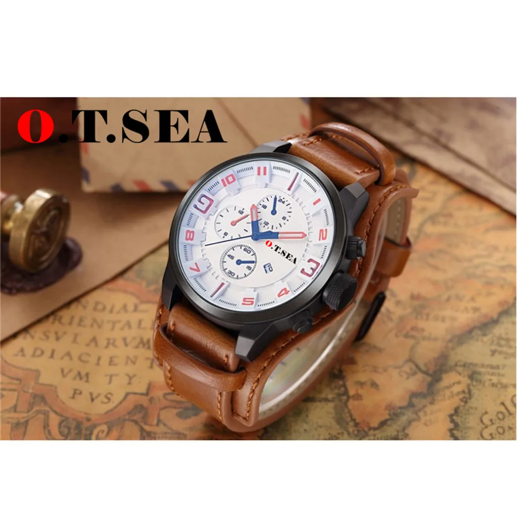 Часы мужские, армейские, кварцевые, с кожаным ремешком, спортивные,...