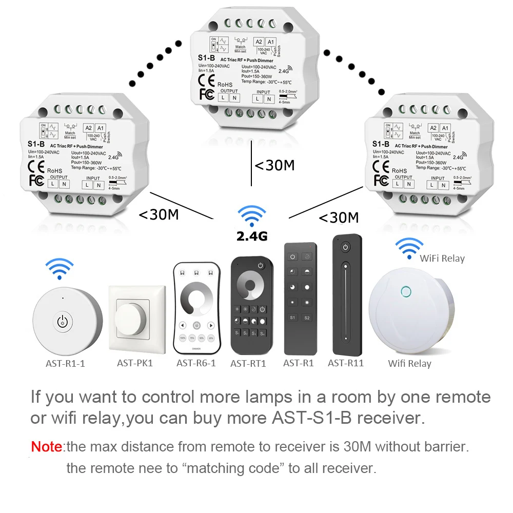 Беспроводной регулятор яркости светодиодных ламп, радиочастотный регулятор яркости для Светодиодный ных лампочек, 220 В, 2,4 В, 110 ГГц, 230 В переменного тока, 220 В