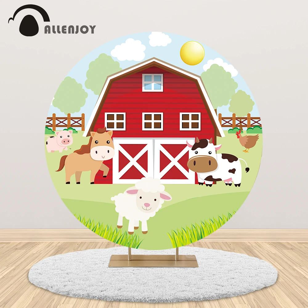 Allenjoy розовая ферма животные День Рождения Вечеринка круглый фон крышка красный дом мультфильм Дети baby shower круг баннер фото фон