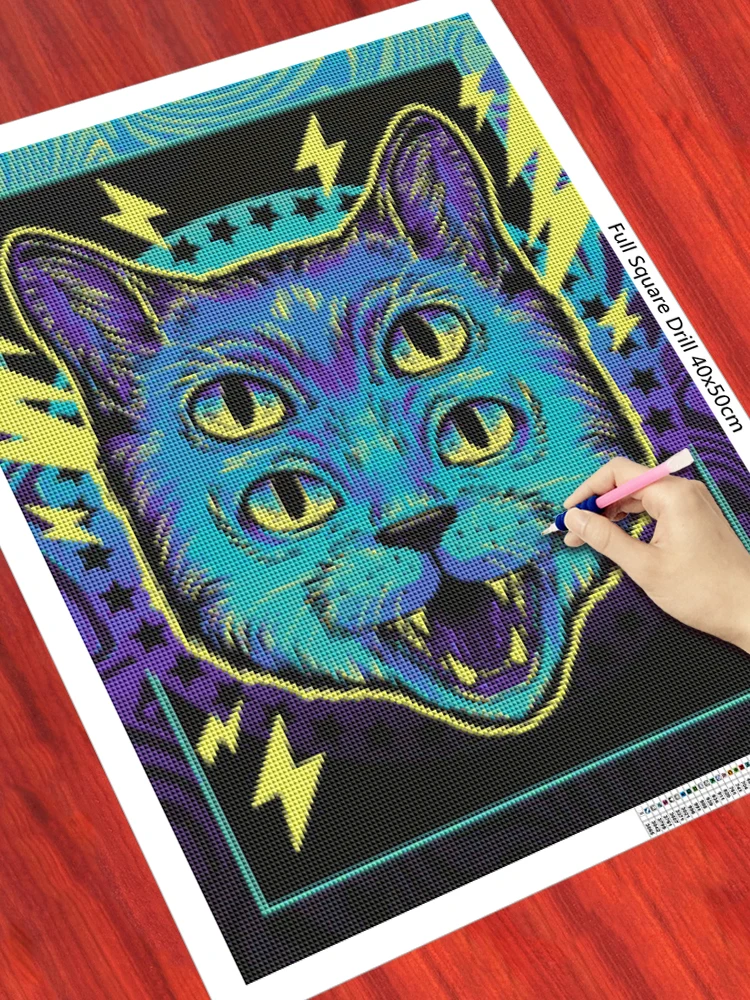Полностью Квадратный бриллиант, 5D Вышивка крестиком животные кот с...