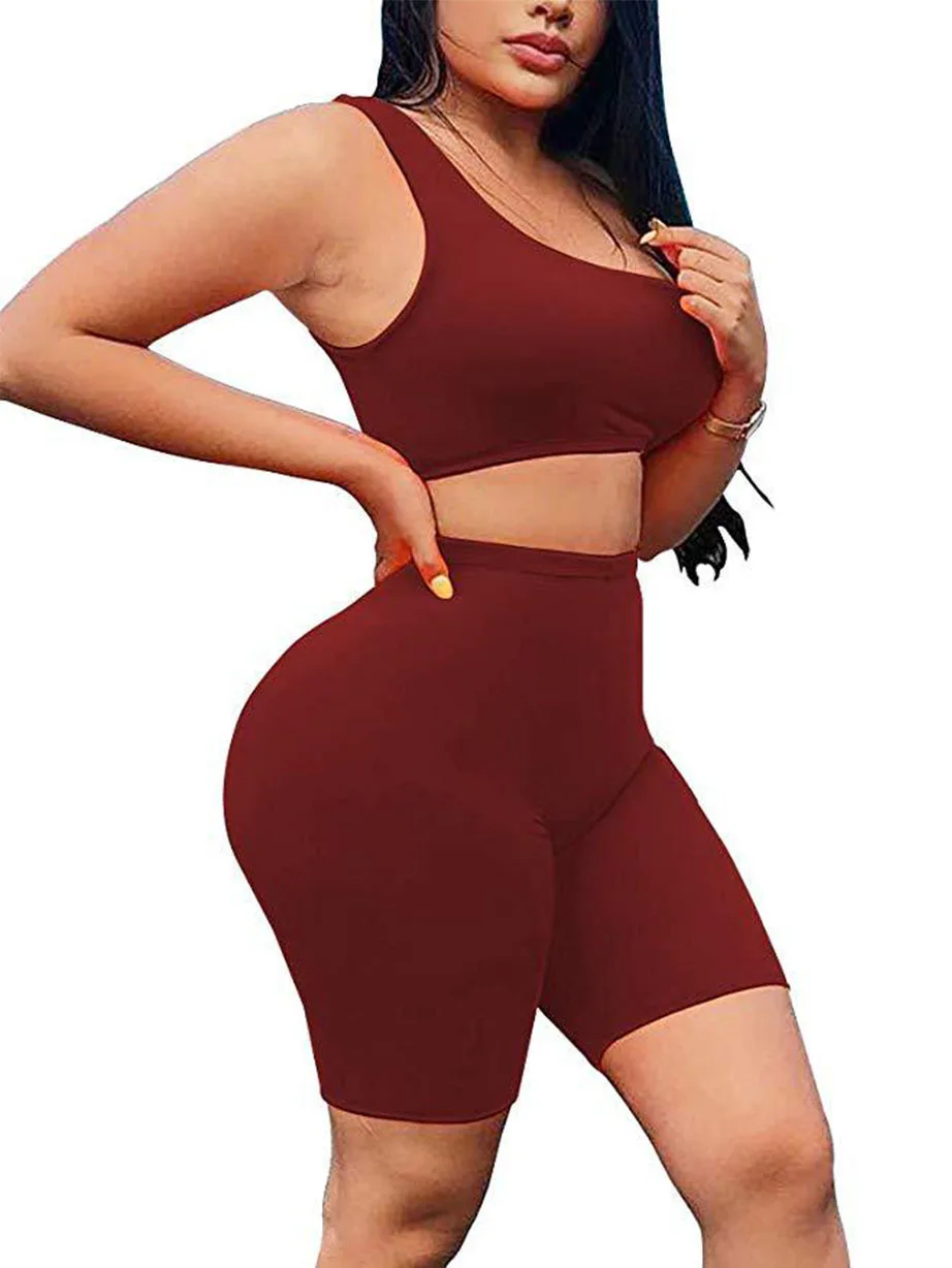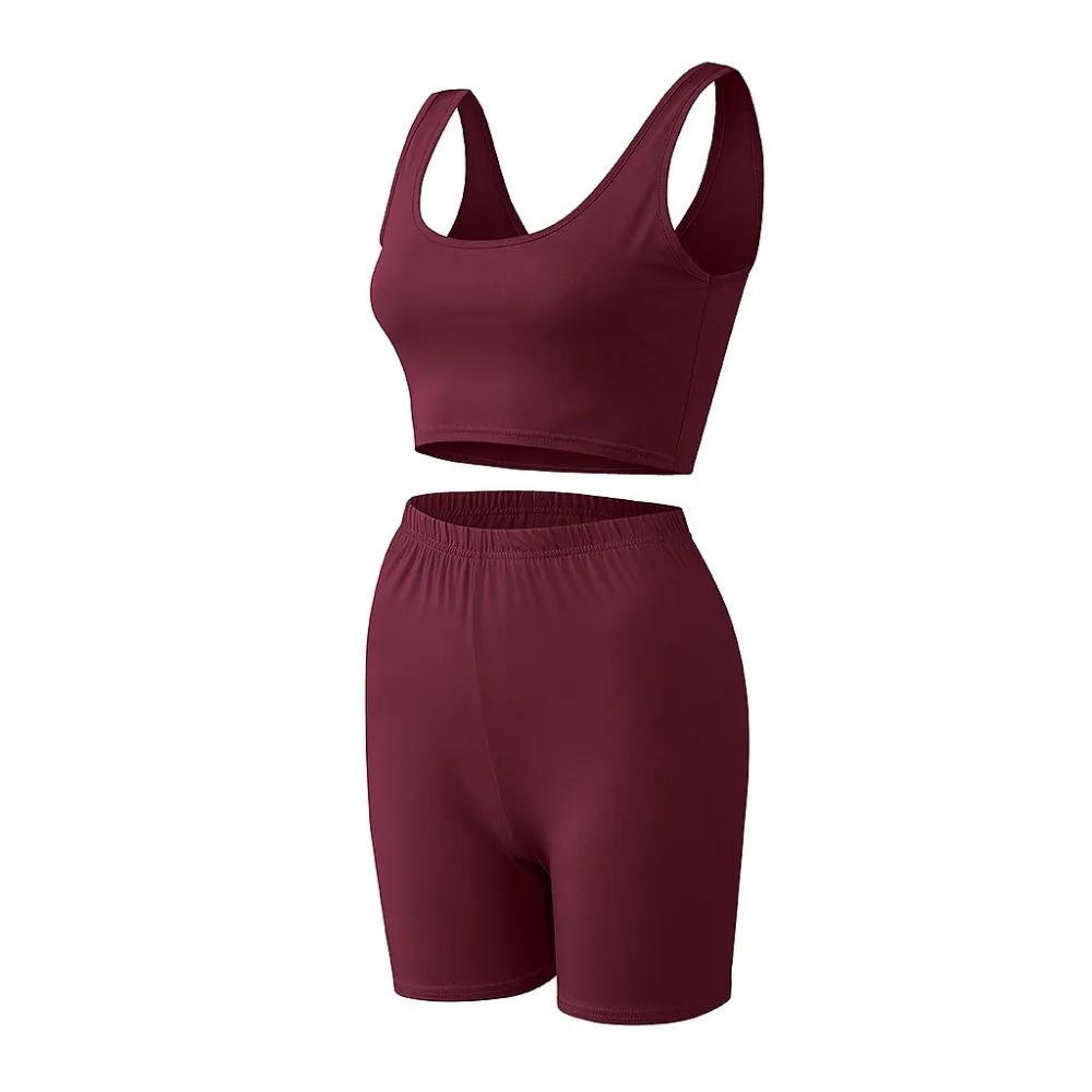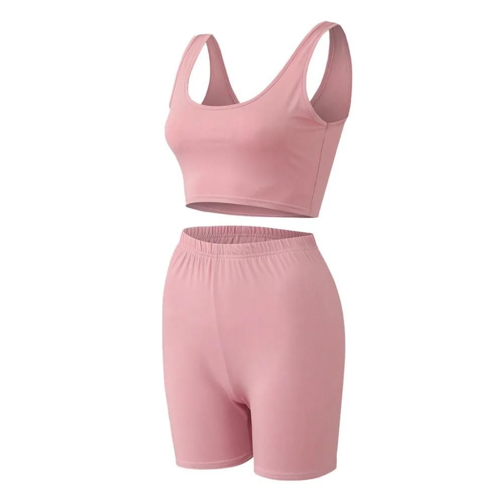 Комплект Спортивный Женский Для Йоги из 2 предметов, спортивная одежда, пикантный бюстгальтер без рукавов, с завышенной талией, короткие однотонные бесшовные шорты, костюм для фитнеса