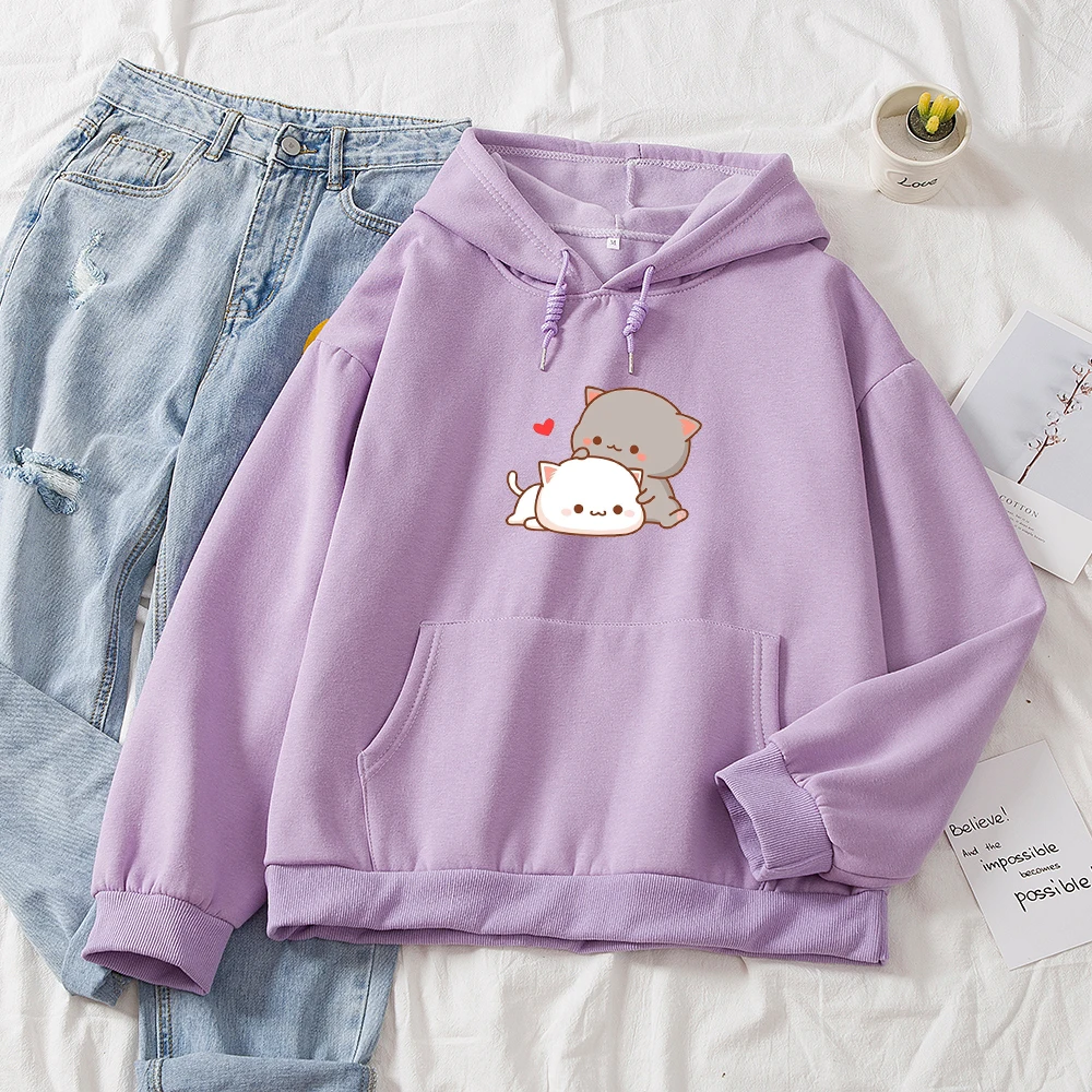 Худи женское в стиле Харадзюку, милая свободная толстовка с мультипликационным принтом для пар, повседневный свитшот с длинным рукавом, хлопковый топ в стиле Kpop, на весну