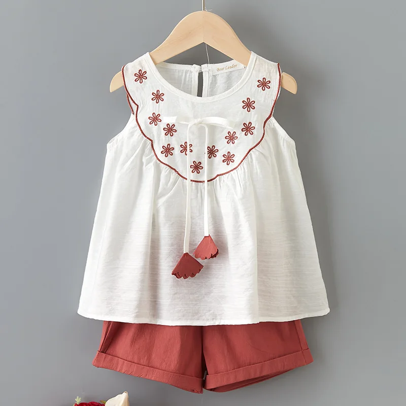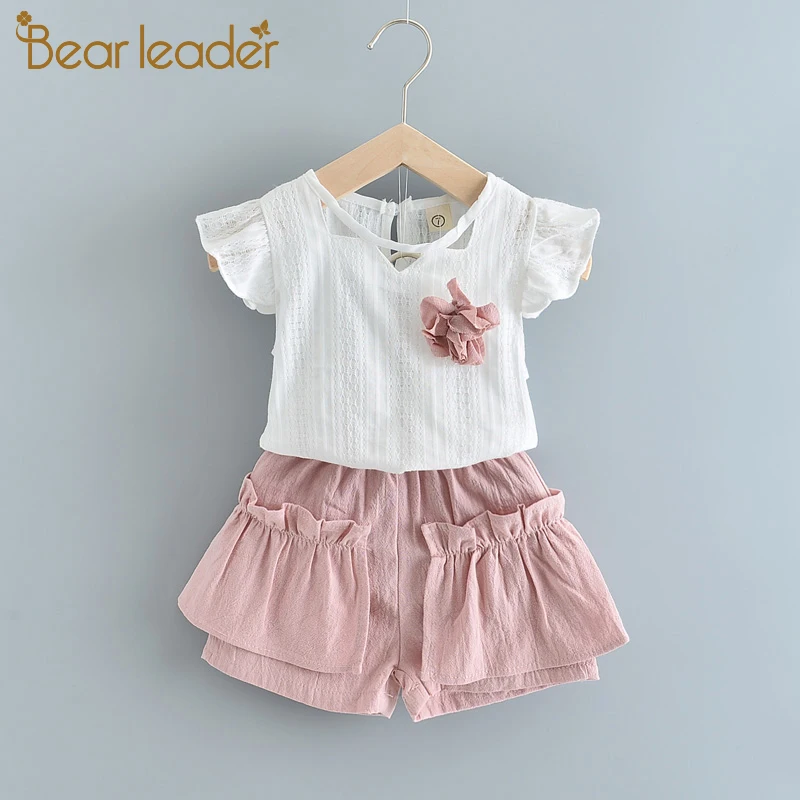 Bear Leaderкомплекты одежды для девочек Новая летняя модная детская одежда с цветами одежда с бантом для девочек топ с цветочным принтом и штаны комплекты из 2 предметов