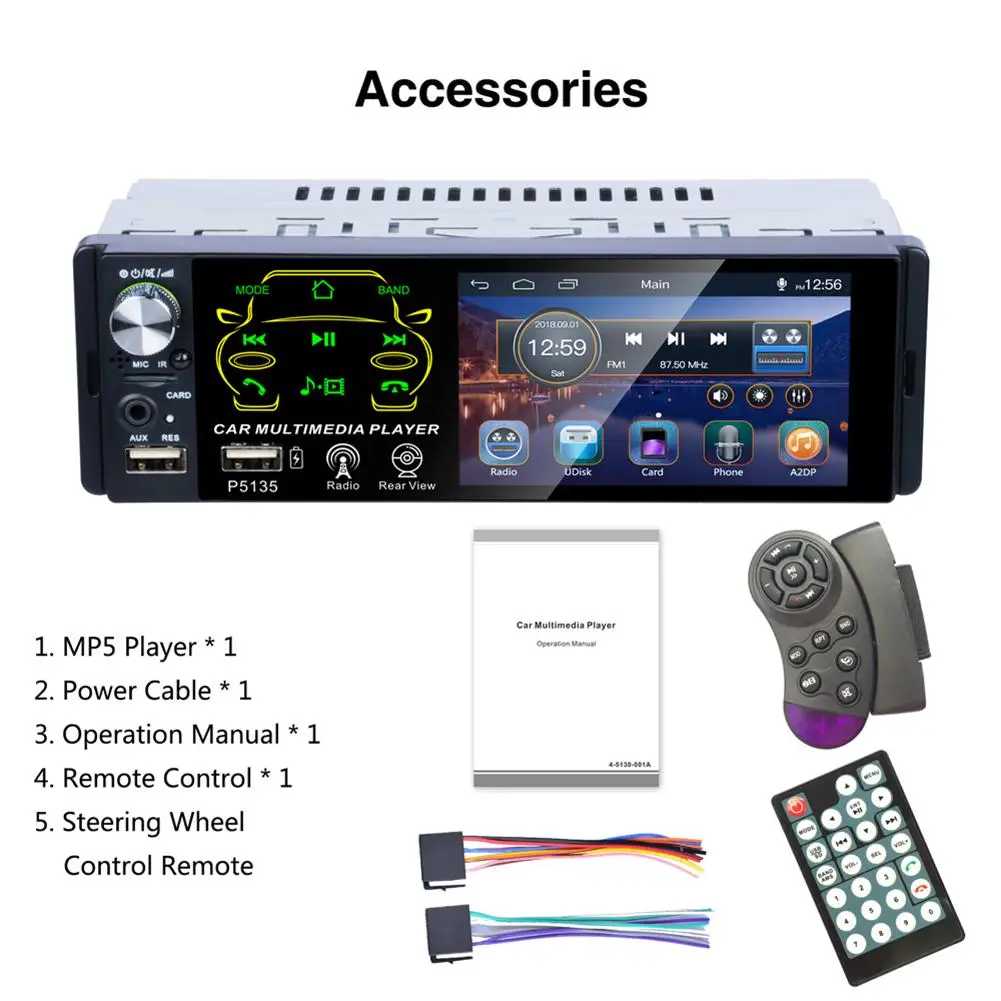 Автомагнитола 1 Din, MP5 Plyer, FM-радио, автомобильное аудио, стерео, Bluetooth, Авторадио с поддержкой камеры заднего вида, управляющее колесо