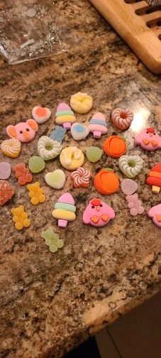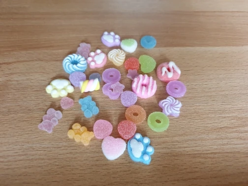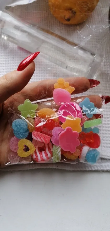 Пришло быстро. Они выглядят как настоящие сладости, хорошо подходят для использования в смолы или для декодирования.