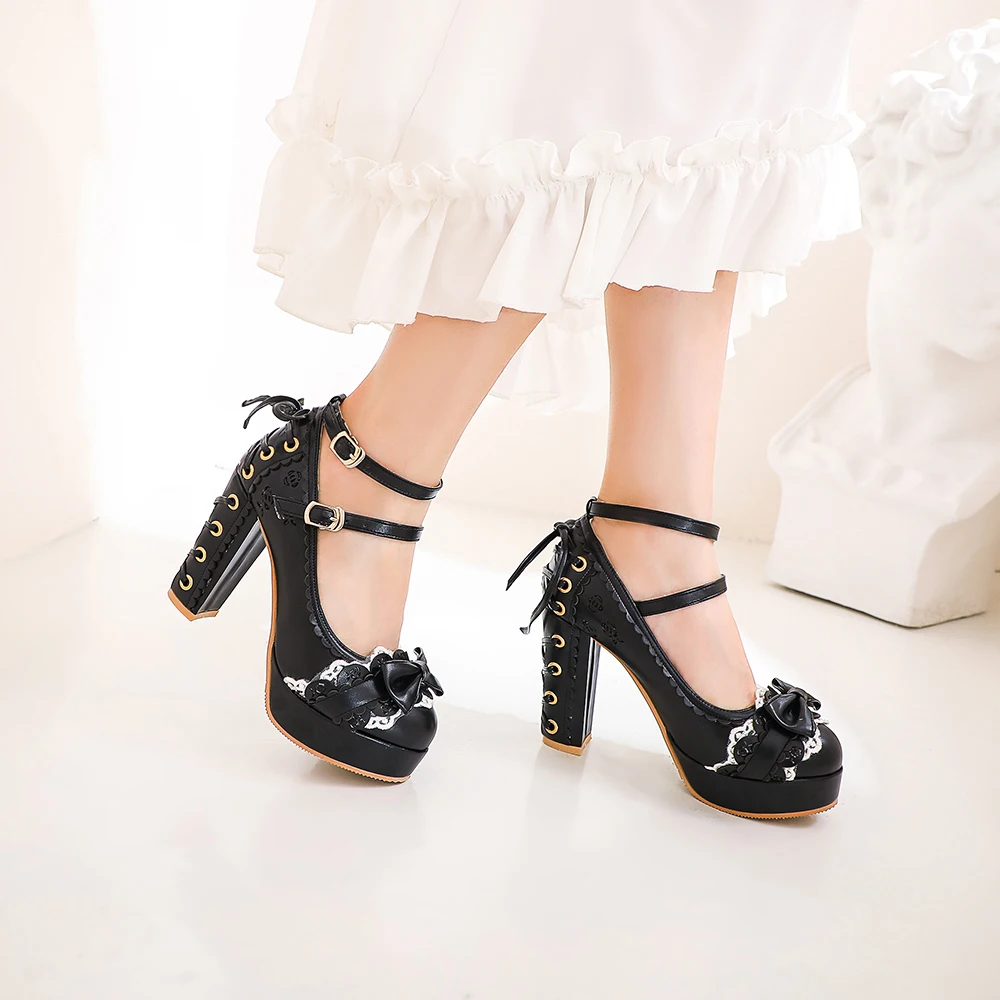 В стиле лолита с тяжелой подошвой; Женская обувь женские туфли-лодочки на платформе; Обувь для принцесс с бантом, милые женские туфли в стиле косплей, с круглым мыском; Туфли для ночного клуба на высоком каблуке