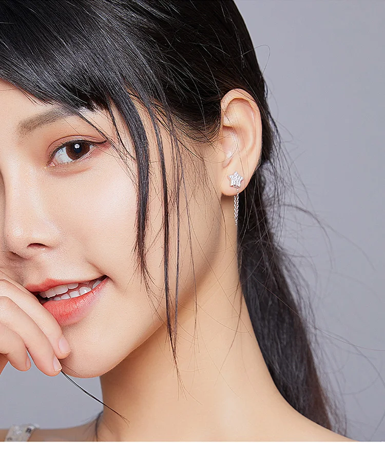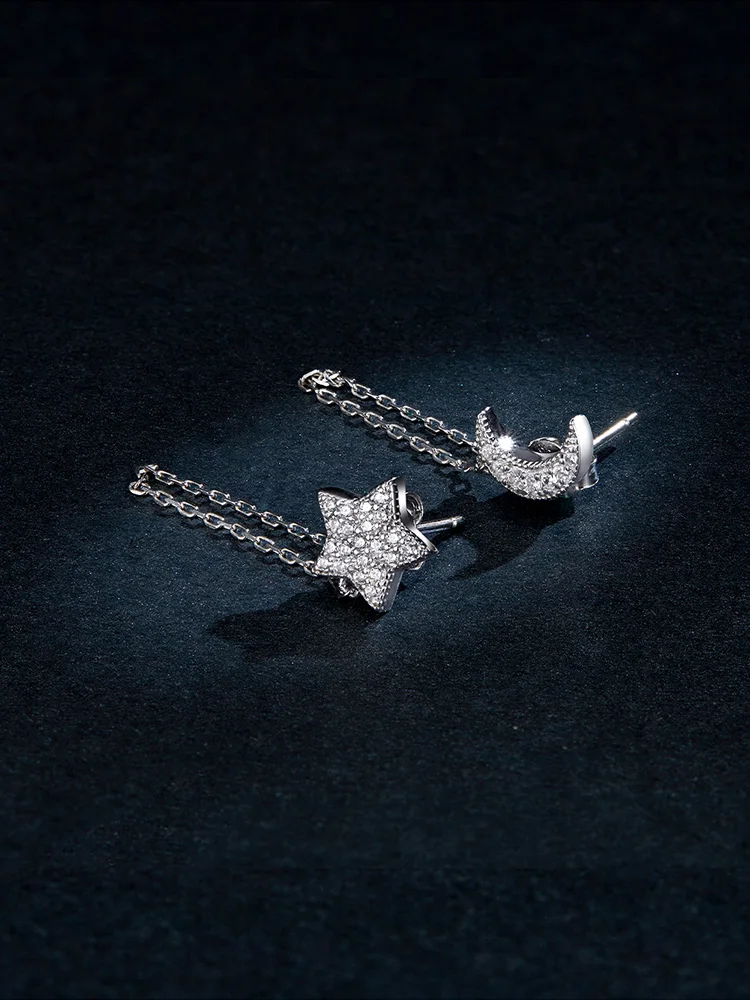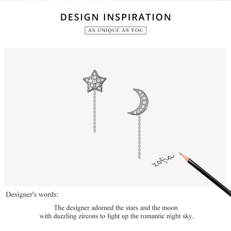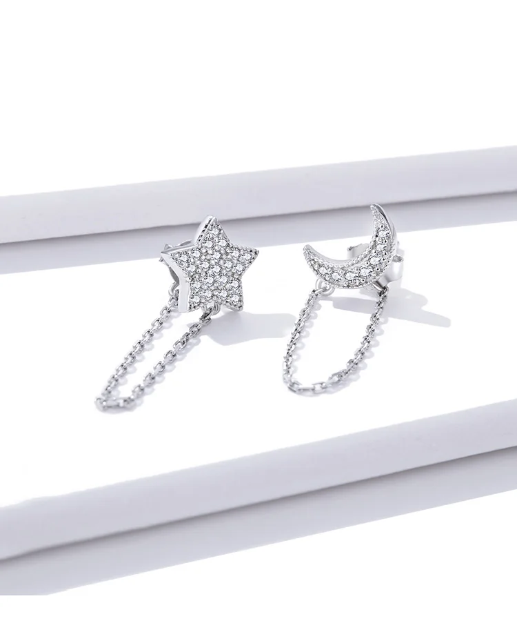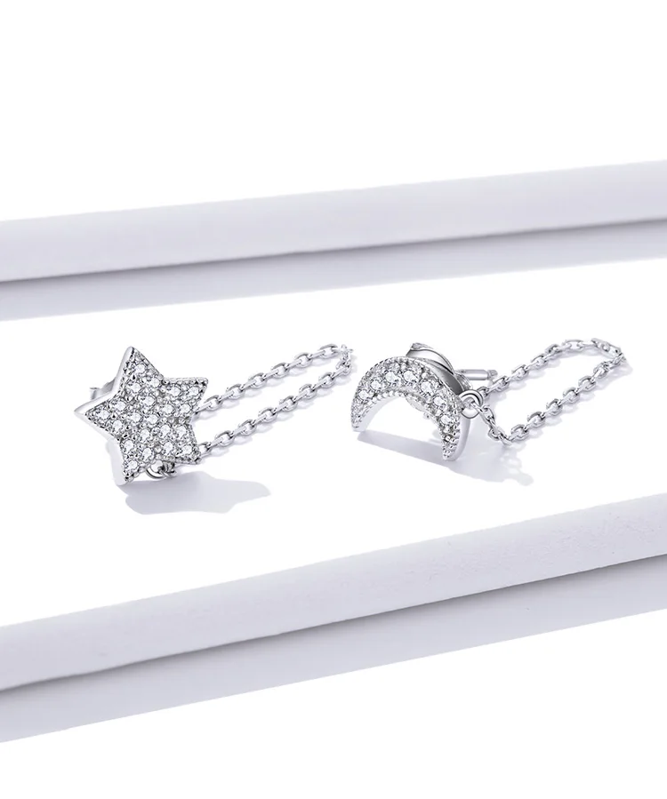 Женские Висячие серьги bamoer, из стерлингового серебра 925 пробы, с цепочкой в виде луны и звезд, с прозрачным кубическим цирконием, свадебные ювелирные украшения, BSE385
